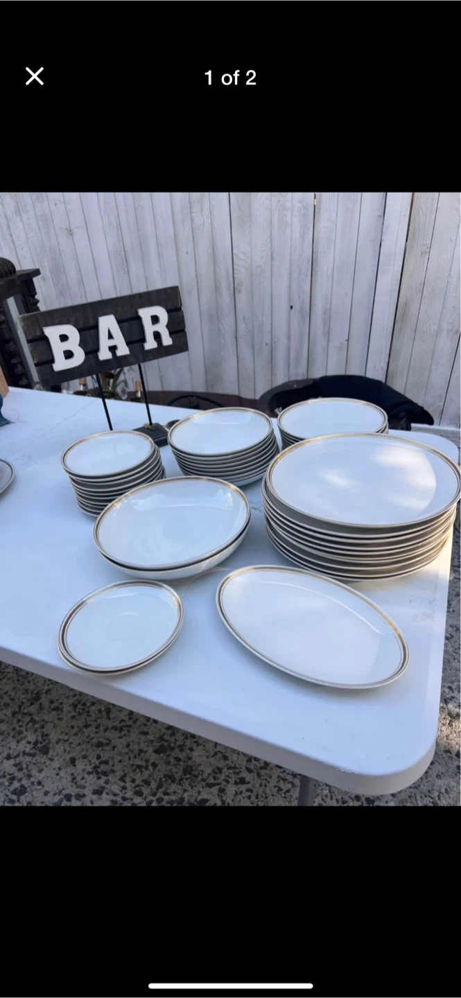 Selling a set of Royal M by Yamaka Melissa dishes. They are white with a gold rim. Perfect for adding a touch of elegance to your dining table!