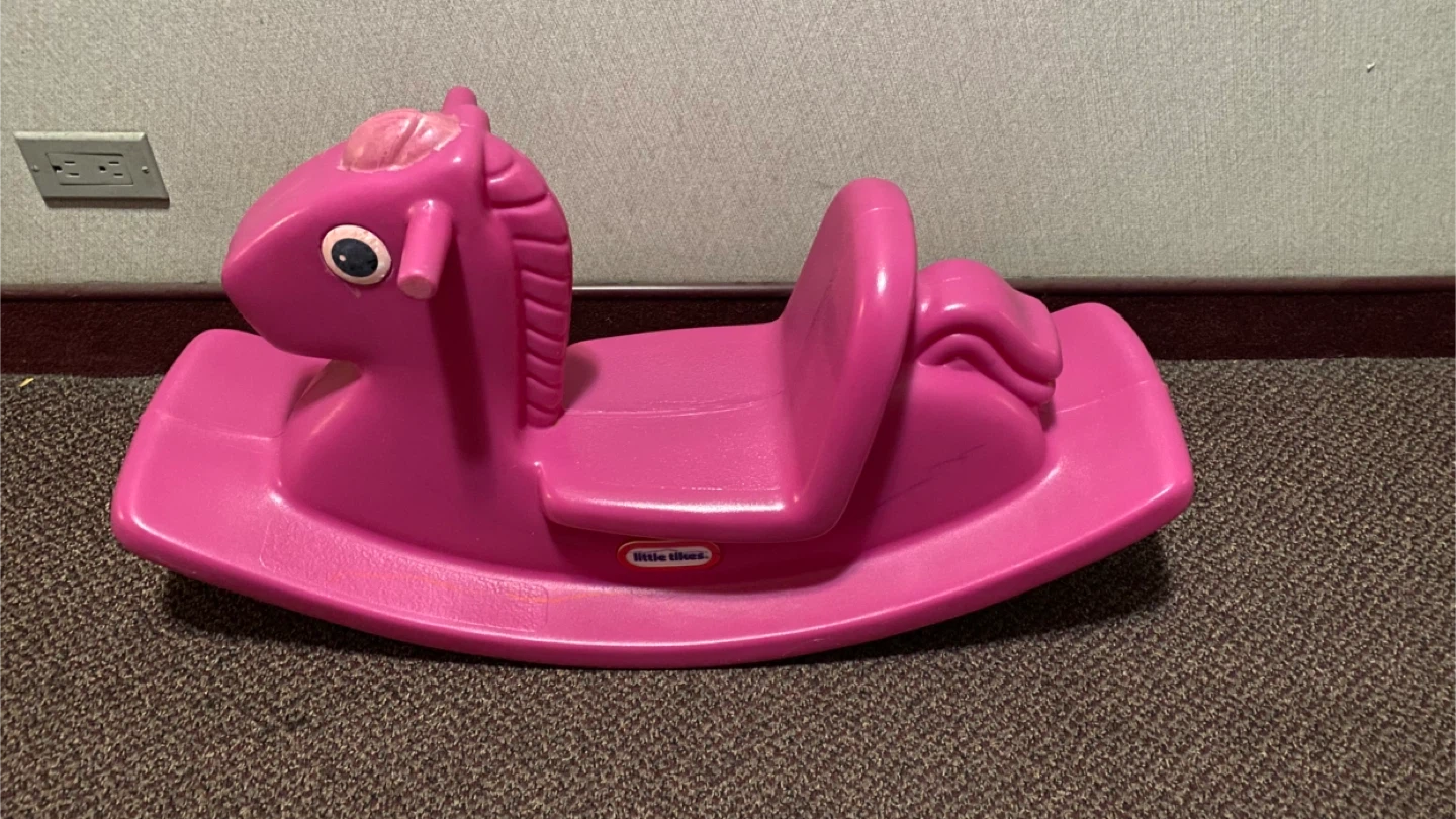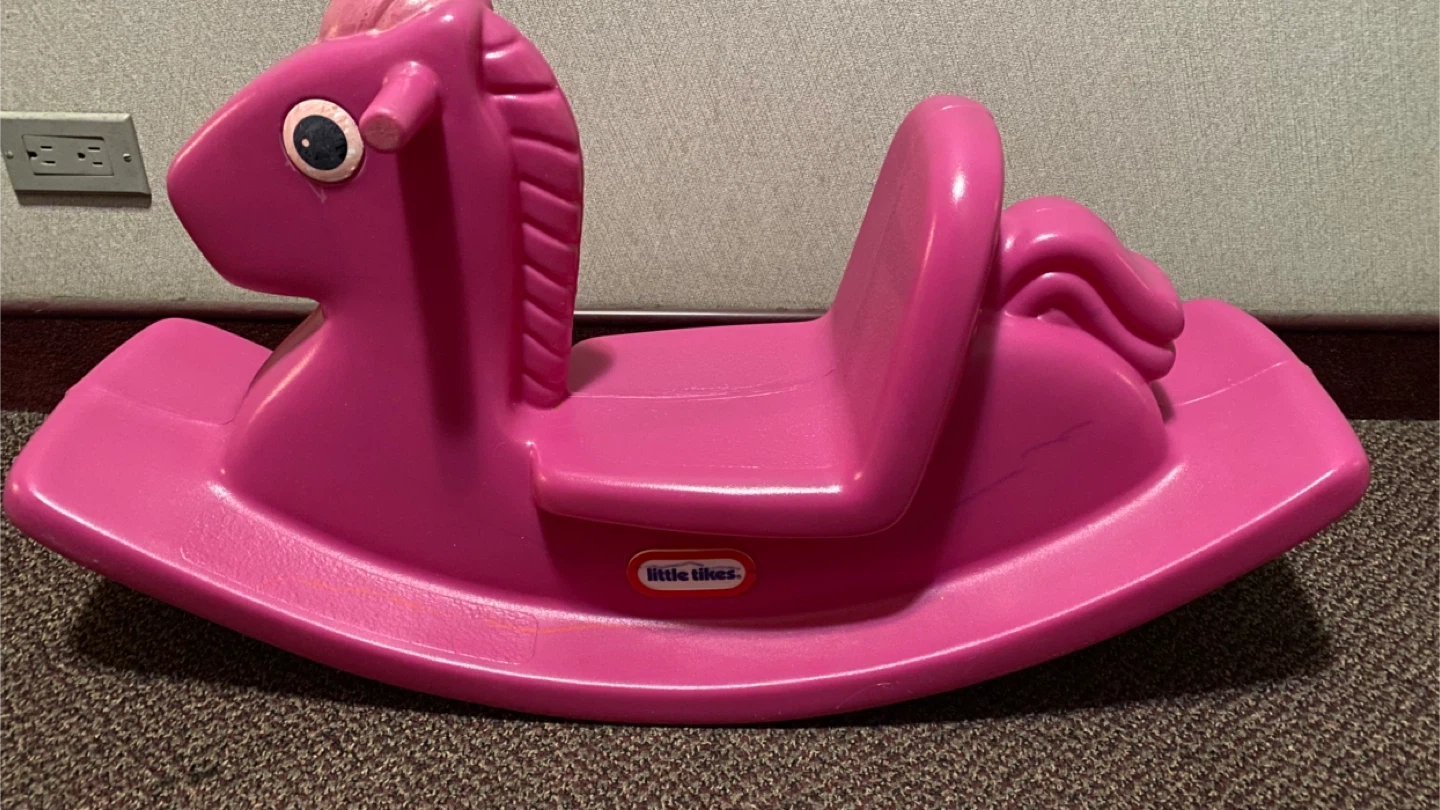 Here's a Little Tikes rocking horse in pink! It's in good condition and ready for a new little rider. Perfect for toddlers and young children to enjoy some rocking fun!