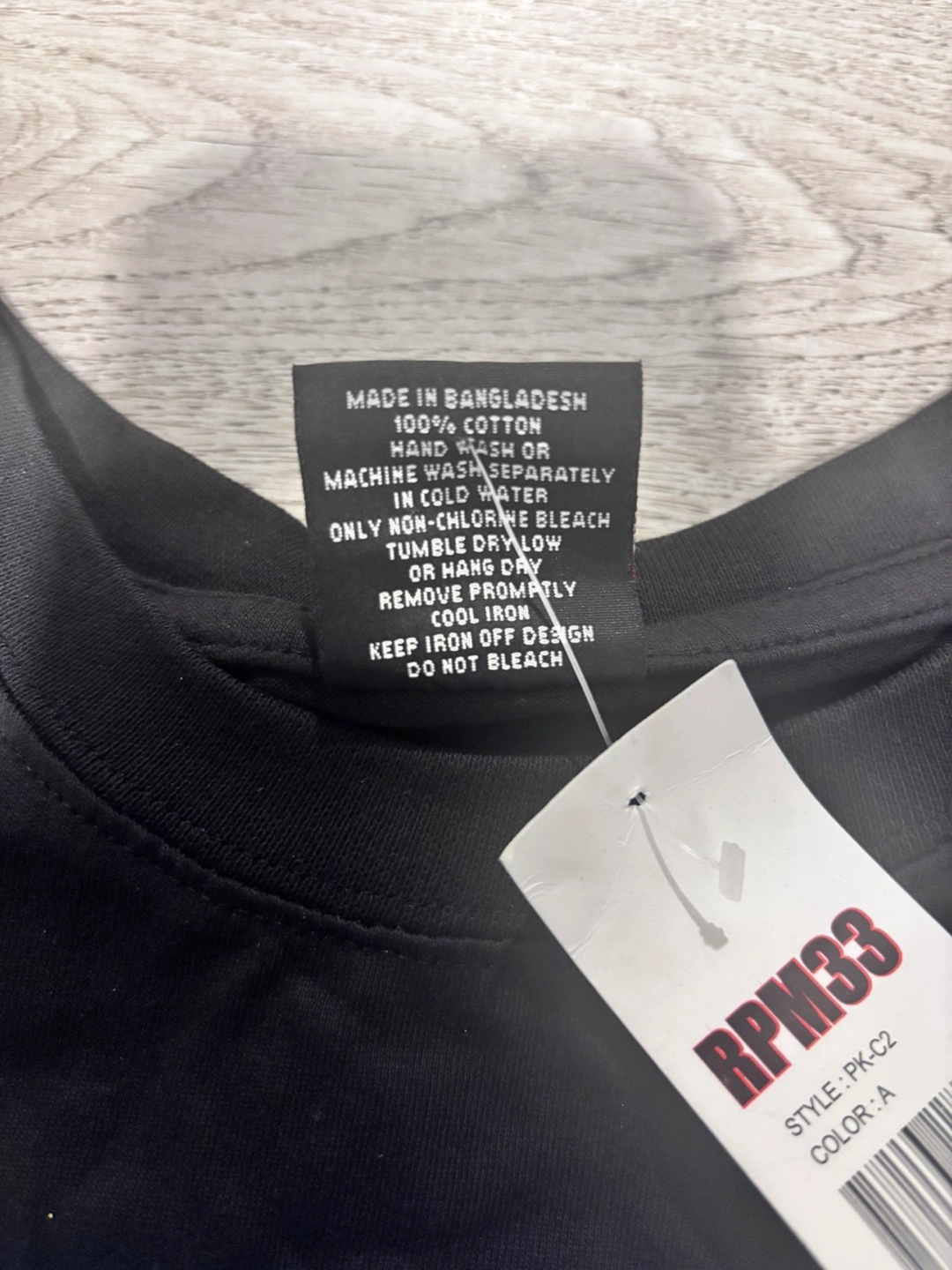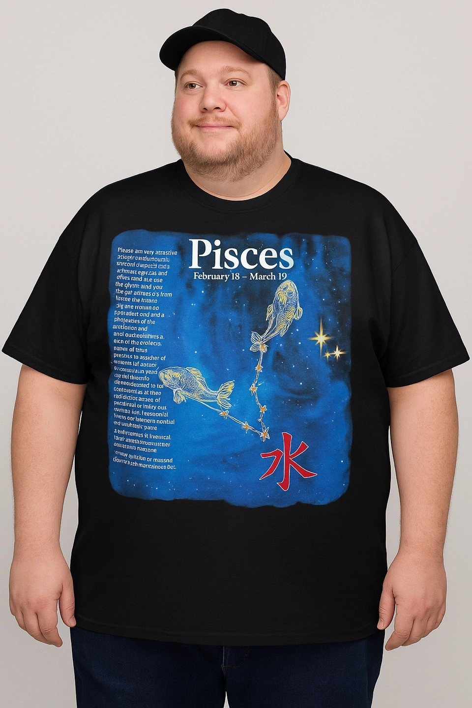 Selling a black RPM33 t-shirt with a Pisces graphic. The shirt is made of 100% cotton and the care instructions are: hand wash or machine wash separately in cold water, only non-chlorine bleach, tumble dry low or hang dry, remove promptly, cool iron, keep iron off design, and do not bleach Design: Features two celestial fish with constellation stars against a cosmic blue background. • Details: Includes Pisces horoscope traits (compassionate, artistic, dreamy) and date range (February 18 – March 19). • Color: Classic black with vibrant blue print. • Material: Soft cotton blend (comfortable and breathable). • Fit: Unisex, relaxed fit, short sleeves. • Condition: Brand new with tags. Perfect for astrology lovers, star gazers, or anyone who wants to wear their Pisces pride. Makes a fun gift for birthdays or spiritual friends.