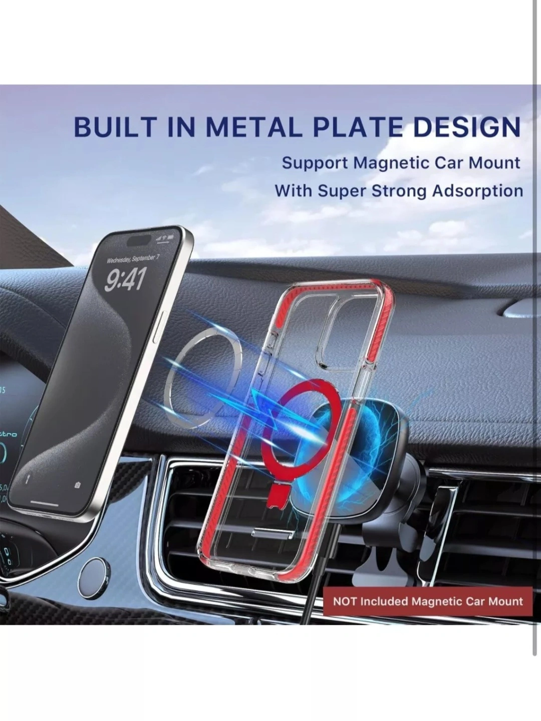 This iPhone case features a built-in metal plate design for magnetic car mount support. The rotating ring stand allows for seamless landscape or portrait positioning. It provides camera and screen protection with a raised bezel, offering 4.2mm camera protection and 1.45mm screen protection. It also exceeds military-grade drop protection, with 80% improvement in shocks, collisions, and scratch resistance. Drop tested at 12ft with 0% phone damage