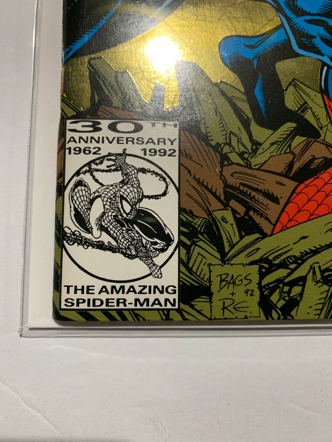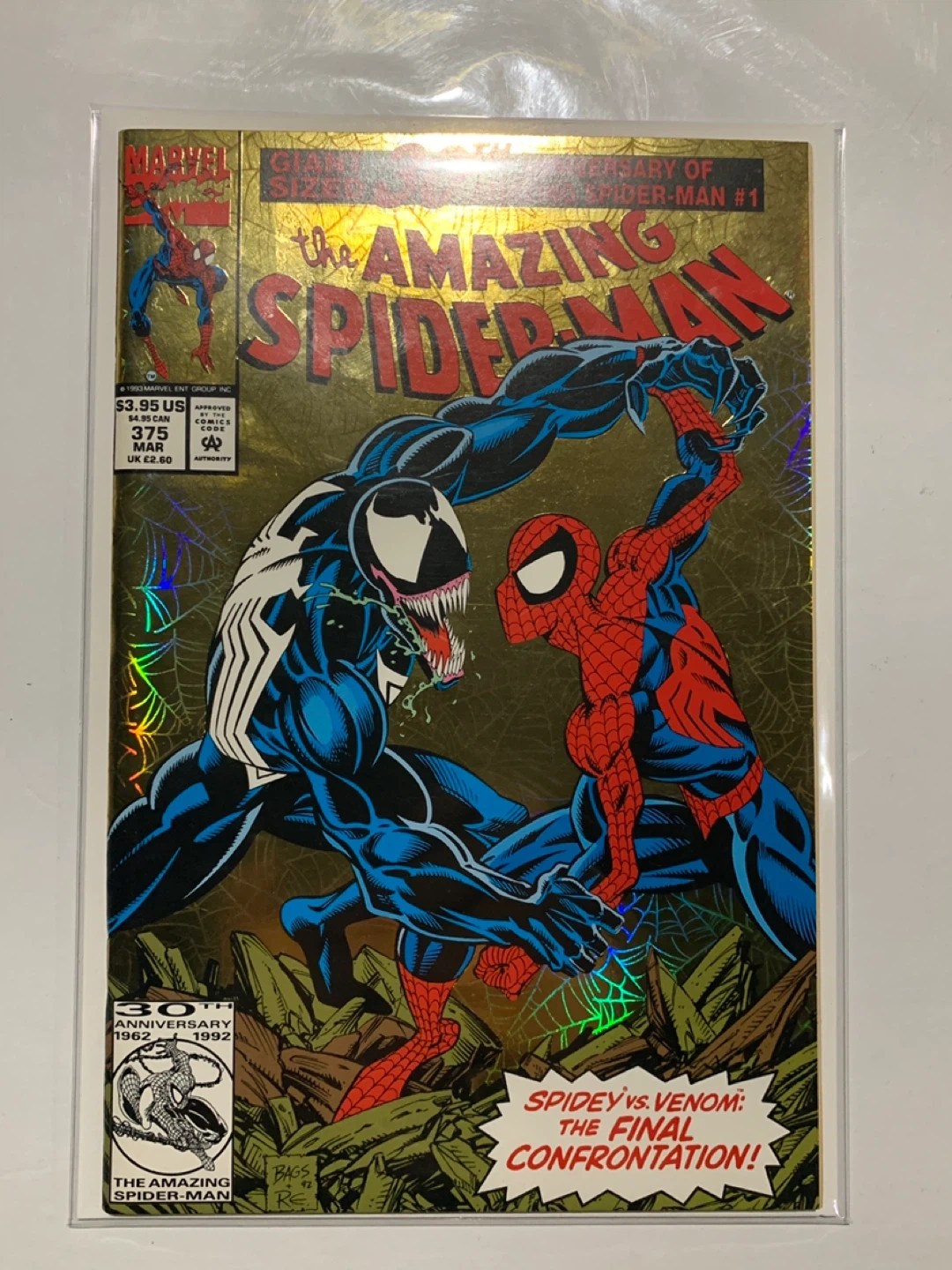 This is The Amazing Spider-Man #1 Giant Size 30th Anniversary Gold Edition. It features Spider-Man vs. Venom. This comic was published in 1992. Marvel Comics The Amazing Spider-Man #1 giant-sized 30th anniversary issue. Features Spidey vs. Venom. Published in 1992. This collector's comic celebrates 30 years of Amazing Spider-Man. A must-have for any serious Marvel collector!
