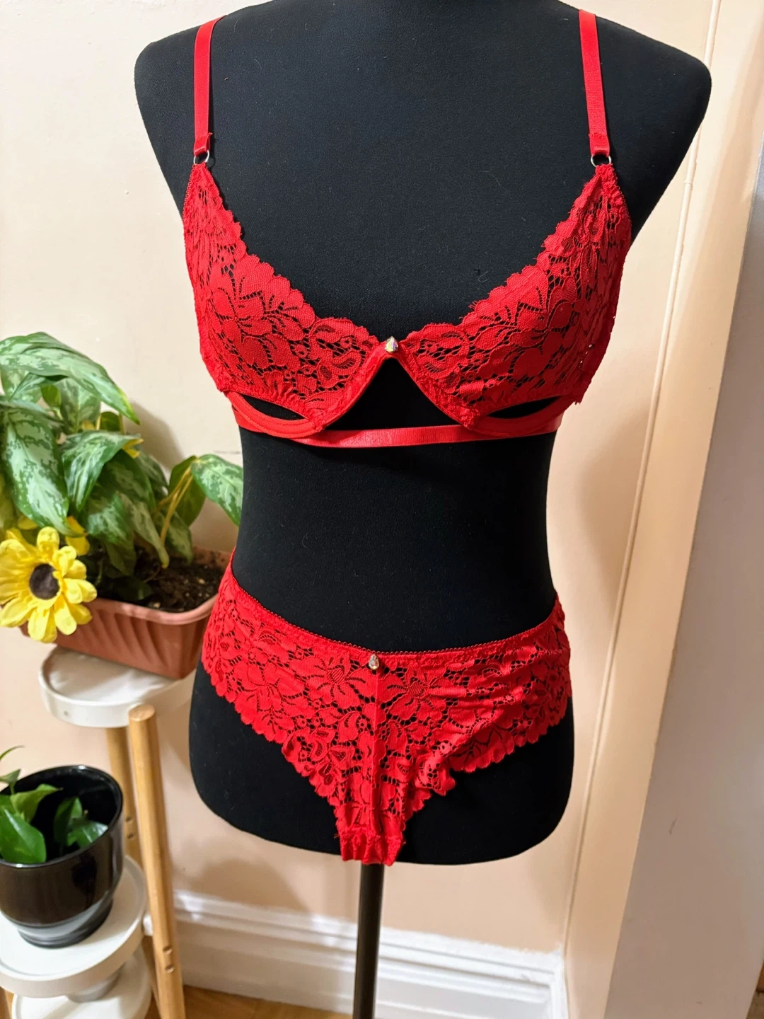 Red Lace Lingerie Set - Bra & Thong - Size M