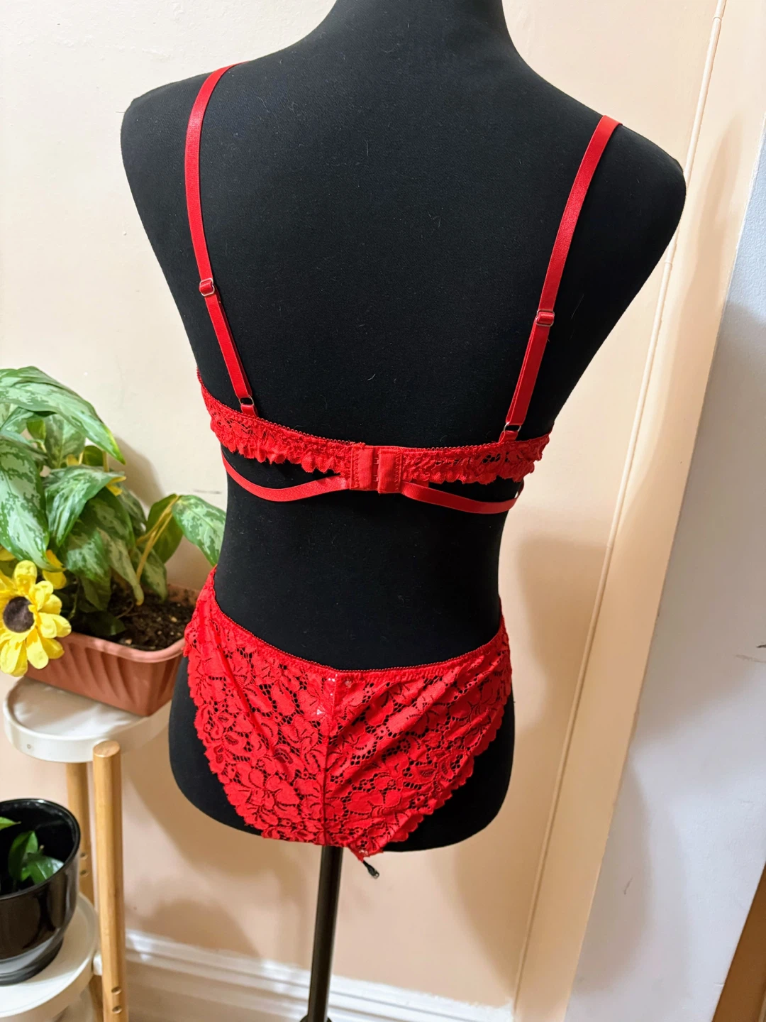 Red Lace Lingerie Set - Bra & Thong - Size M
