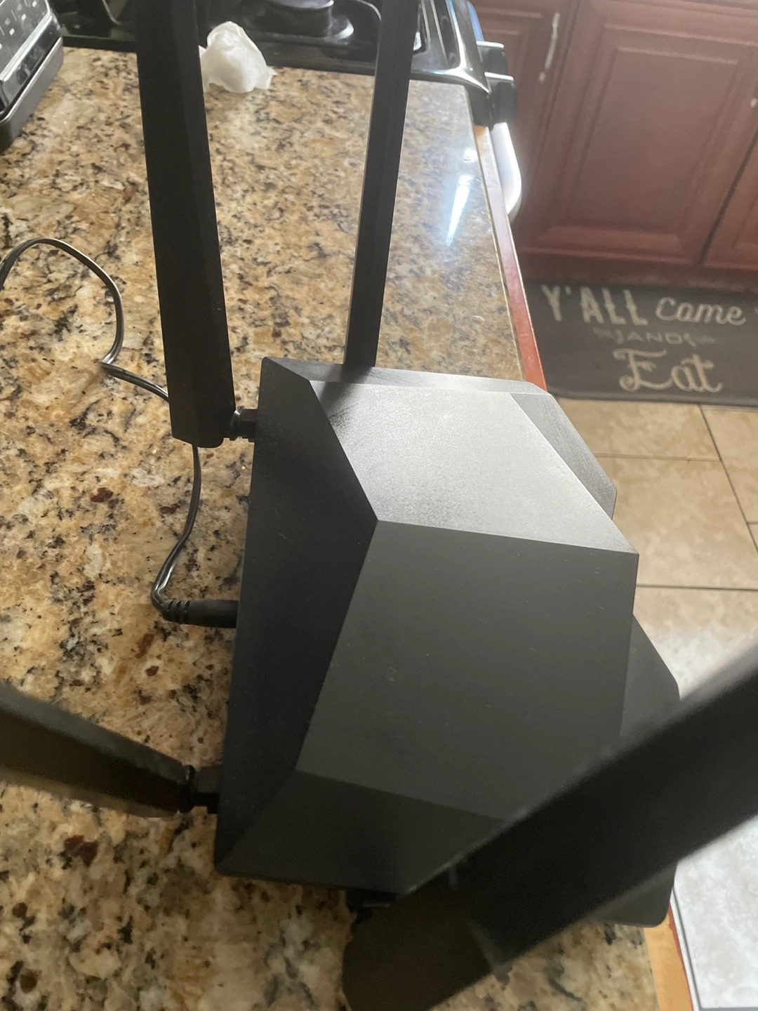 Selling a NETGEAR Nighthawk Tri-Band WiFi 6 Router in great condition. It's black and ready to boost your home network!