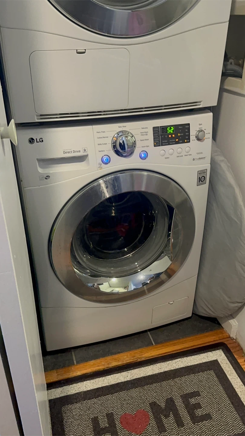 Selling an LG Washer and Dryer combo in great condition! It's a space-saving solution for your laundry needs. The washer features Direct Drive technology, and the dryer has Sensor Dry for efficient performance