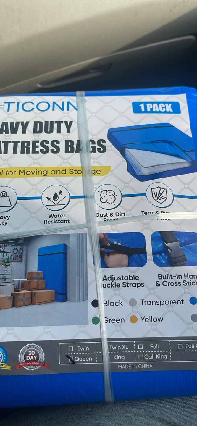 These queen size mattress bags are water-resistant and designed for moving and storage. They feature adjustable buckle straps and built-in handles for easy carrying. Protect your mattress from dust and dirt during transport!