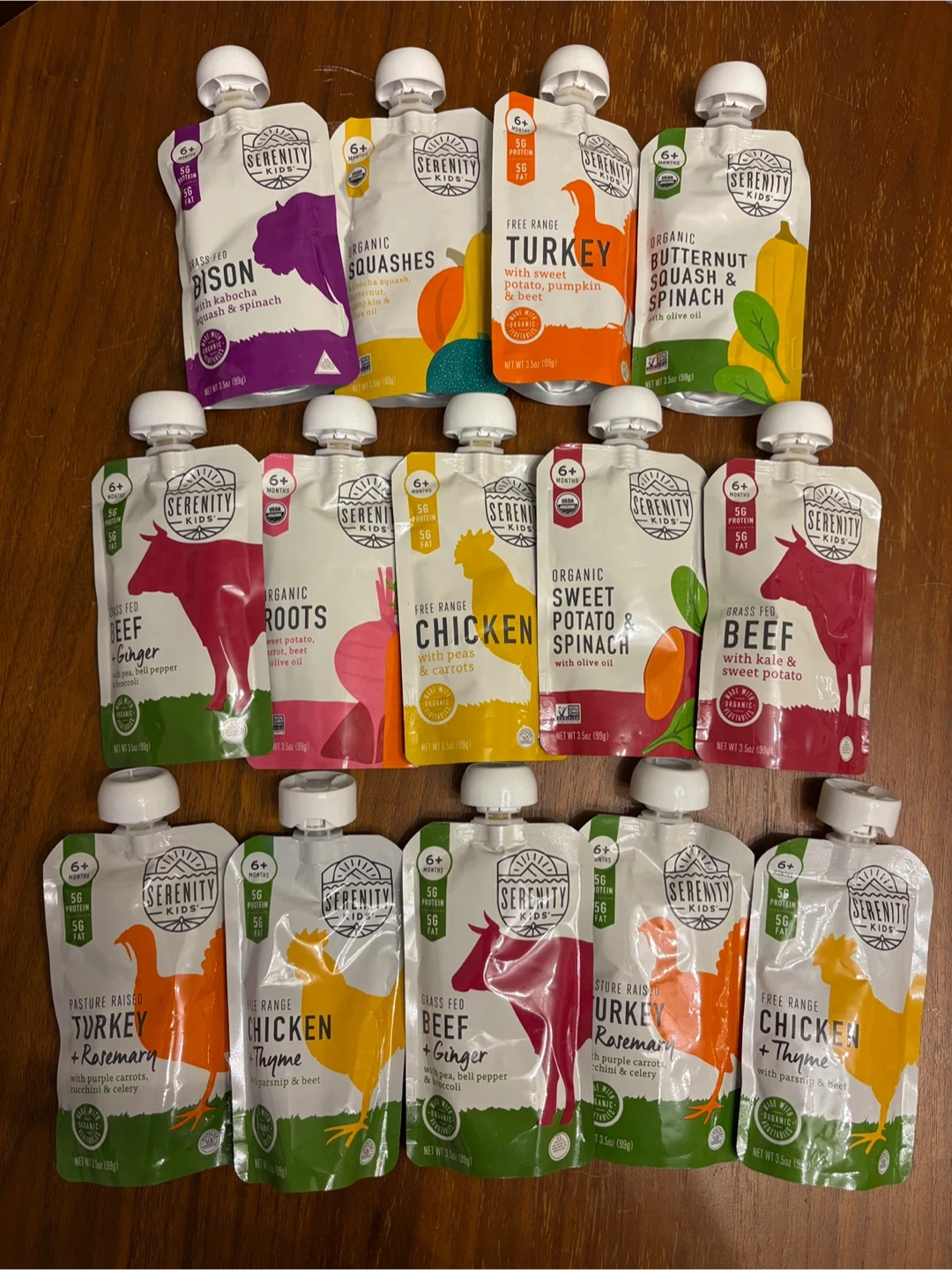 Got a variety of My Serenity Kids baby food pouches for little ones 6+ months. They're packed with organic ingredients and come in different flavors. All new, $5 each
