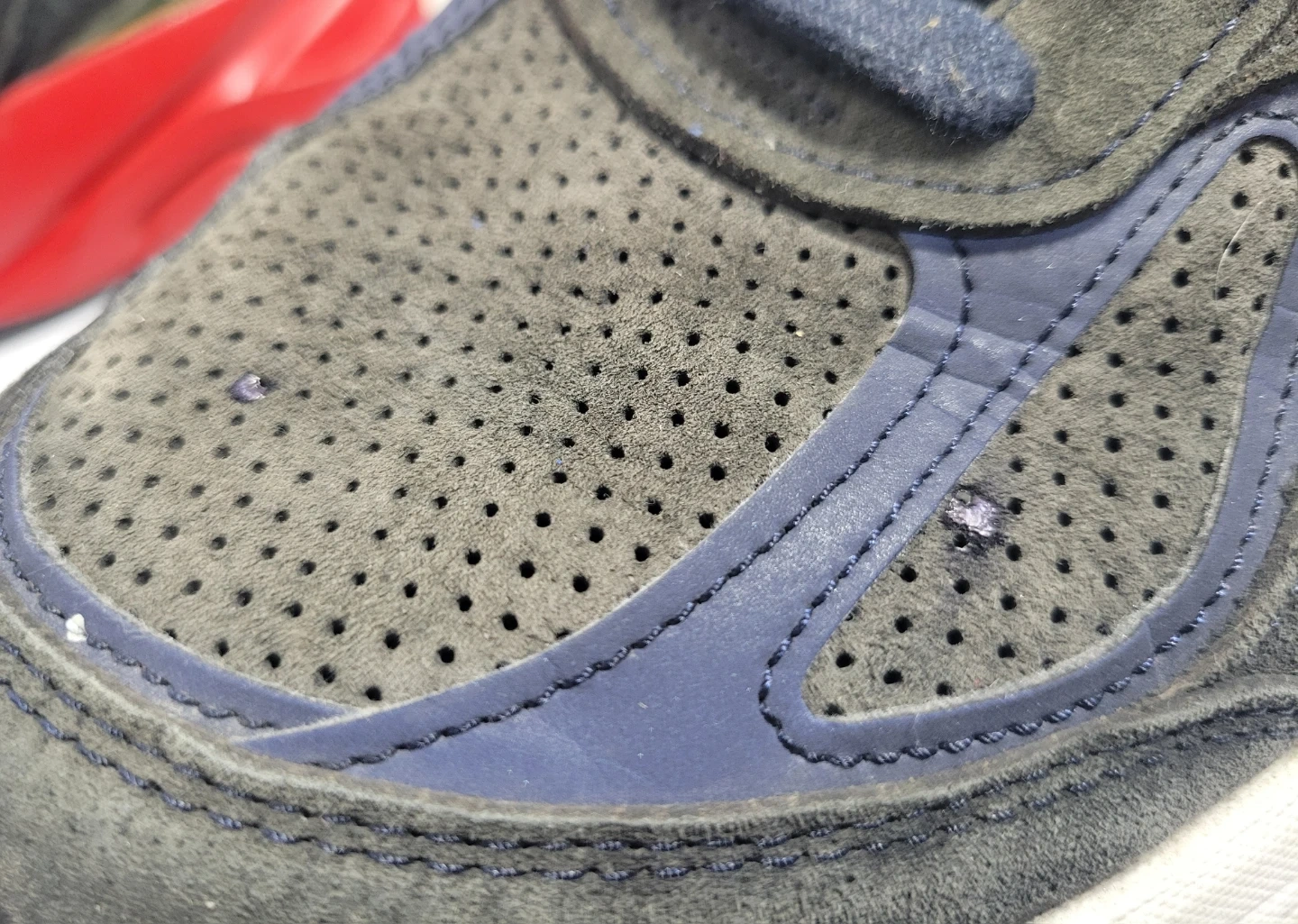 New Balance 990v4 running shoes in a gray, red, and navy colorway. These sneakers feature a suede and mesh upper with a cushioned sole for comfort. Please see detailed pictures for a better idea of condition, thanks!!