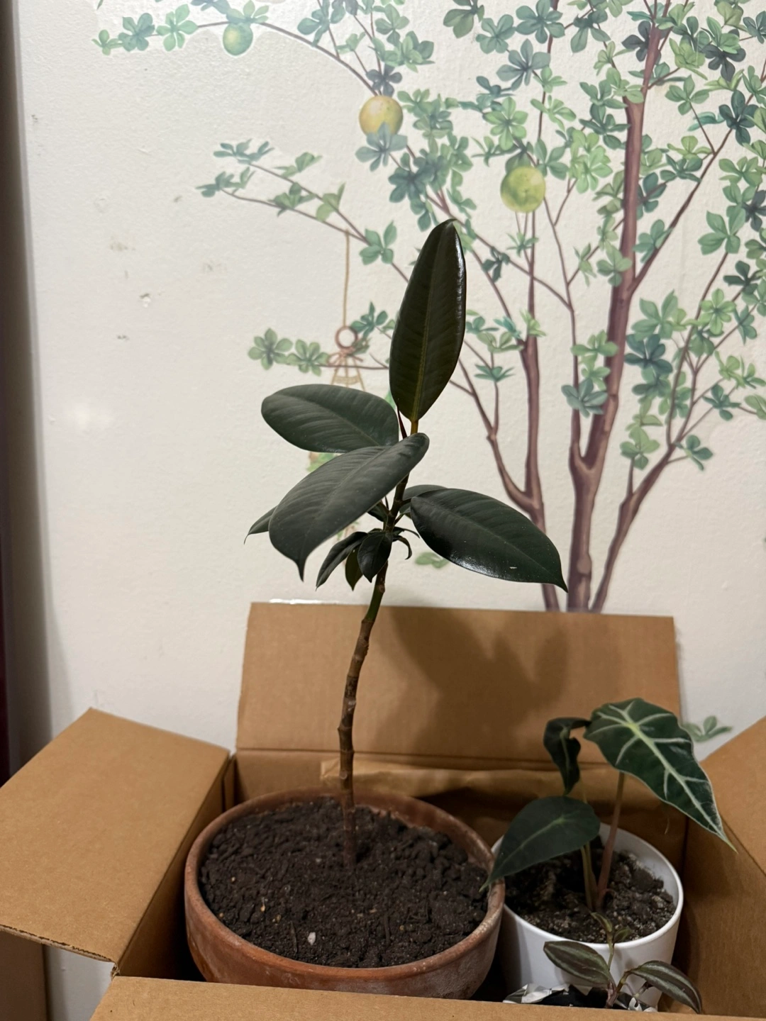 278Small rubber tree plant in a brown pothole Pick up : Elmhurst, US Supermarket Cash ๐ต