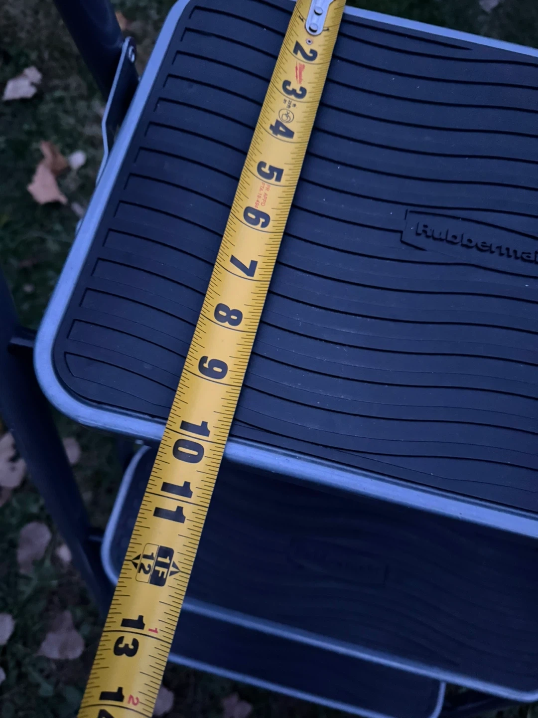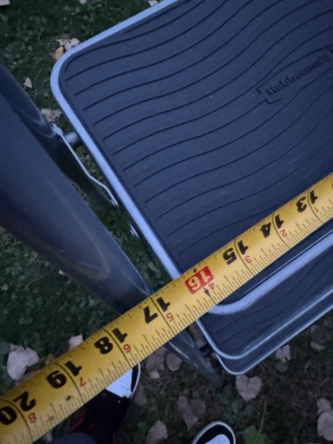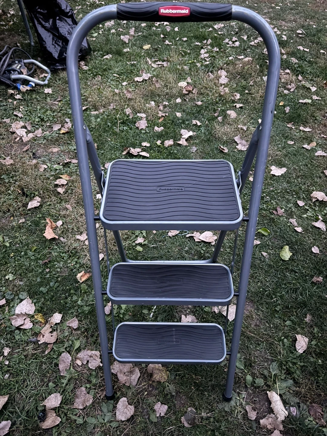 130Selling a Rubbermaid 3-step step stool. It's lightweight and easy to move around. The top step is about 16 inches wide and 11 inches deep, while the total height is around 44 inches. Perfect for reaching those high shelves!