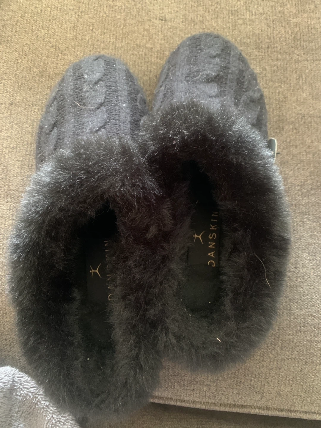 Danskin Women's Black Cable Knit Faux Fur Slippers