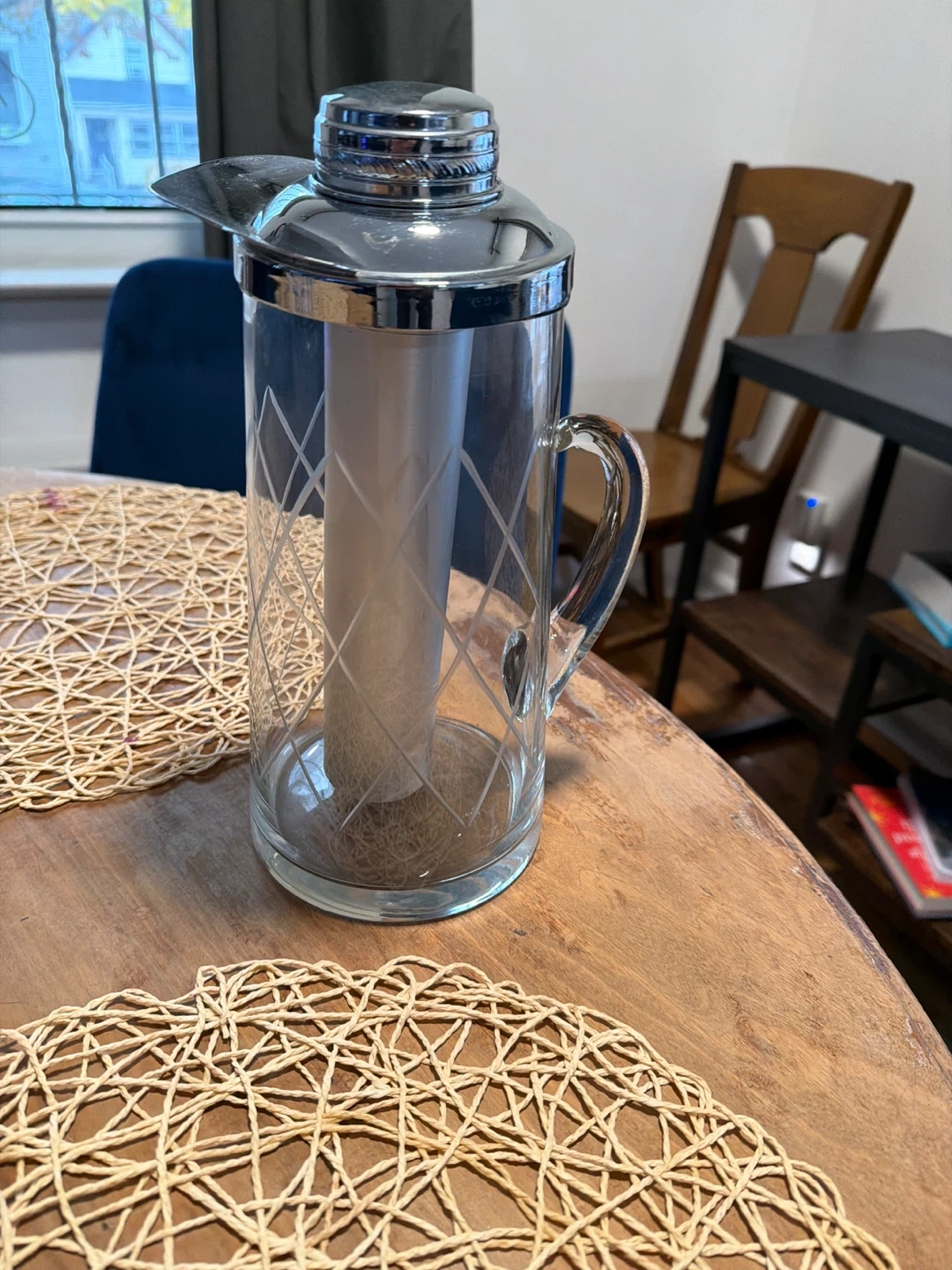 Selling a vintage Chillitube pitcher! It's in great condition and ready to keep your drinks cold. Perfect for summer gatherings or adding a touch of retro charm to your kitchen. The pitcher features a unique chilling tube to keep your beverages refreshingly cold without ice