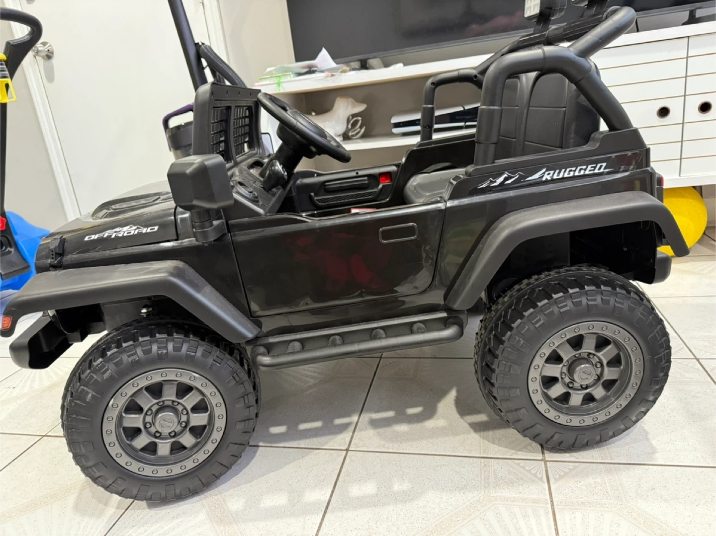 60Selling a black Rugged Off Road ride-on car for kids. It's in great condition and ready for a new driver! Perfect for some fun adventures