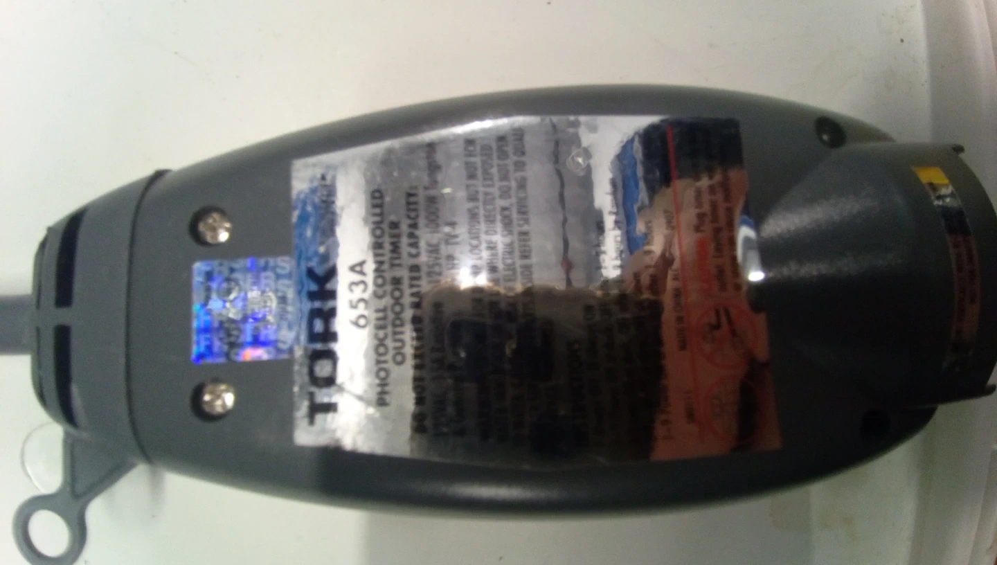 This TORK 653A is a photocell controlled outdoor outlet. It's designed for automating outdoor lighting with its light-sensing capabilities. The unit has a power rating of 1000W and 125V/60Hz. This outlet is perfect for controlling garden lights or porch lights automatically!