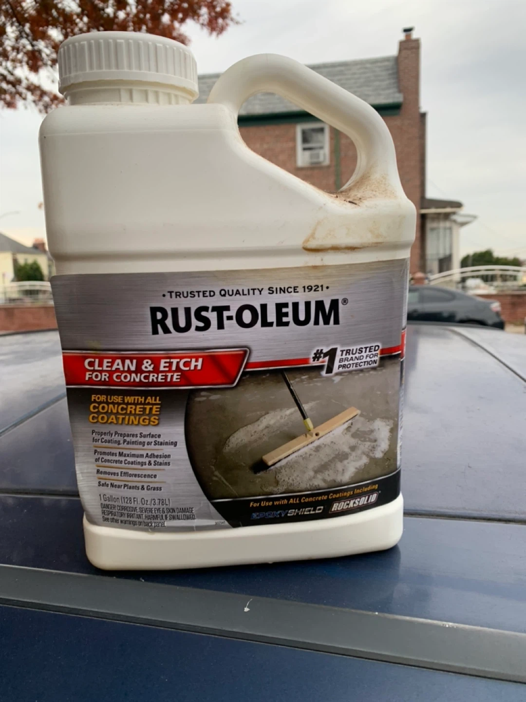 10Selling two 1-gallon container of Rust-Oleum Clean & Etch for Concrete. This product is designed to prepare concrete surfaces for coatings, painting, or staining. It promotes maximum adhesion of concrete coatings and stains, and it also removes efflorescence. Safe to use near plants and grass. $17 each