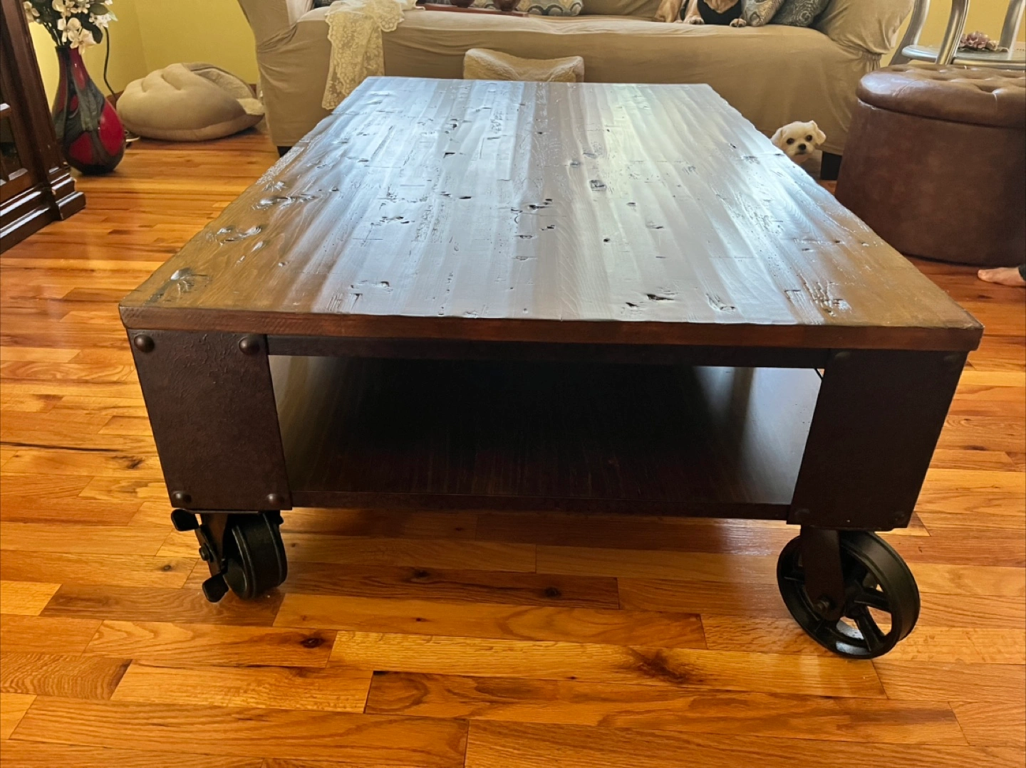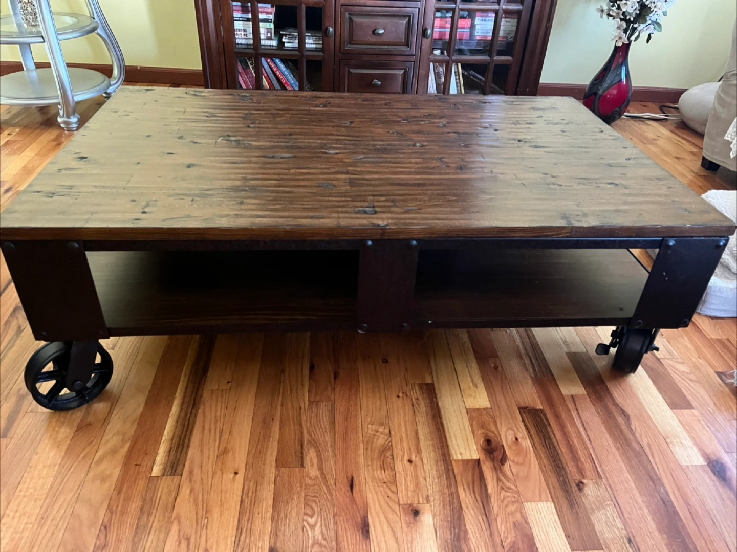 Rustic Wood Coffee Table with Wheels