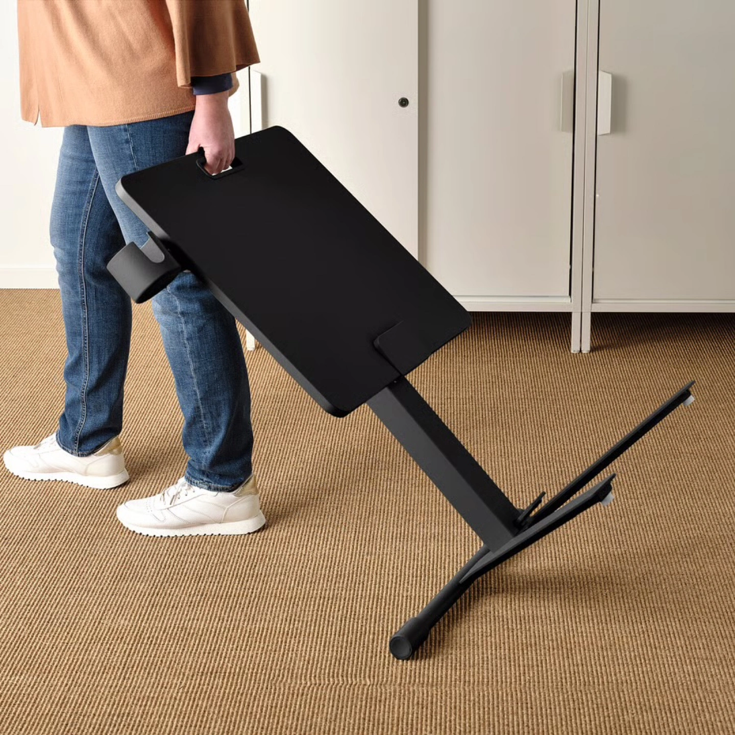 A versatile black laptop table, designed for comfort. The table is easily adjustable and portable.