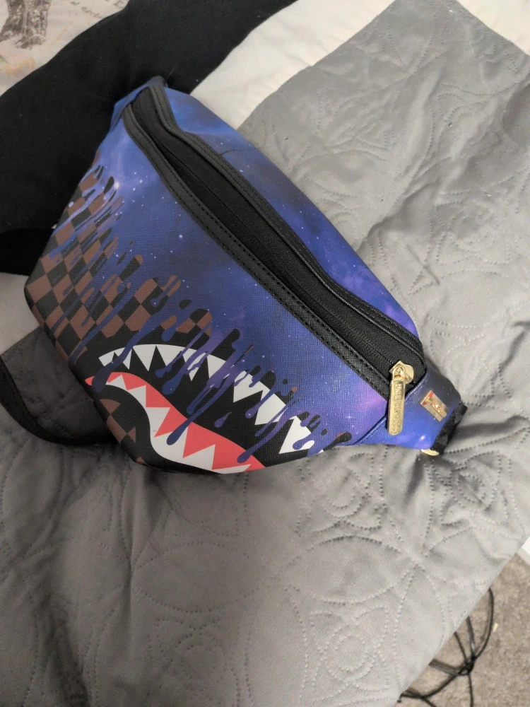 Selling a Sprayground belt bag. It has a unique galaxy and shark design. The bag is in good condition and ready for a new owner! Perfect for carrying your essentials in style