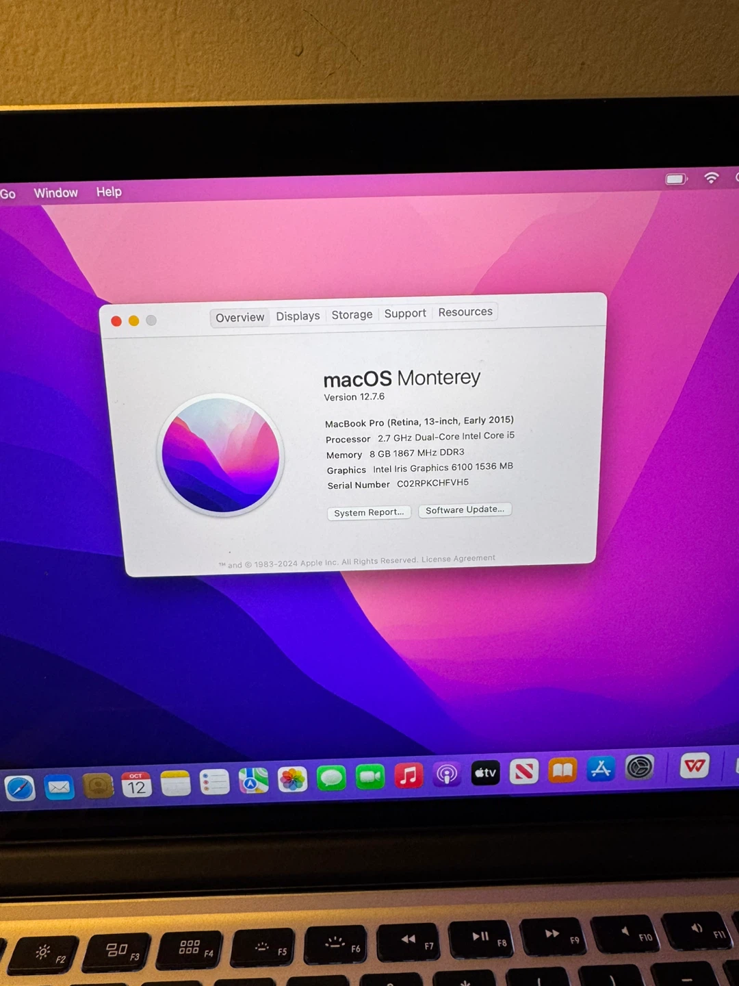 Selling an Apple MacBook Pro 13-inch from early 2015! It has a 2.7 GHz Dual-Core Intel Core i5 processor, 8 GB of memory, and Intel Iris Graphics 6100 1536 MB. It also has 500 GB of Flash Storage and a 13.3-inch Retina display. Comes with the charger