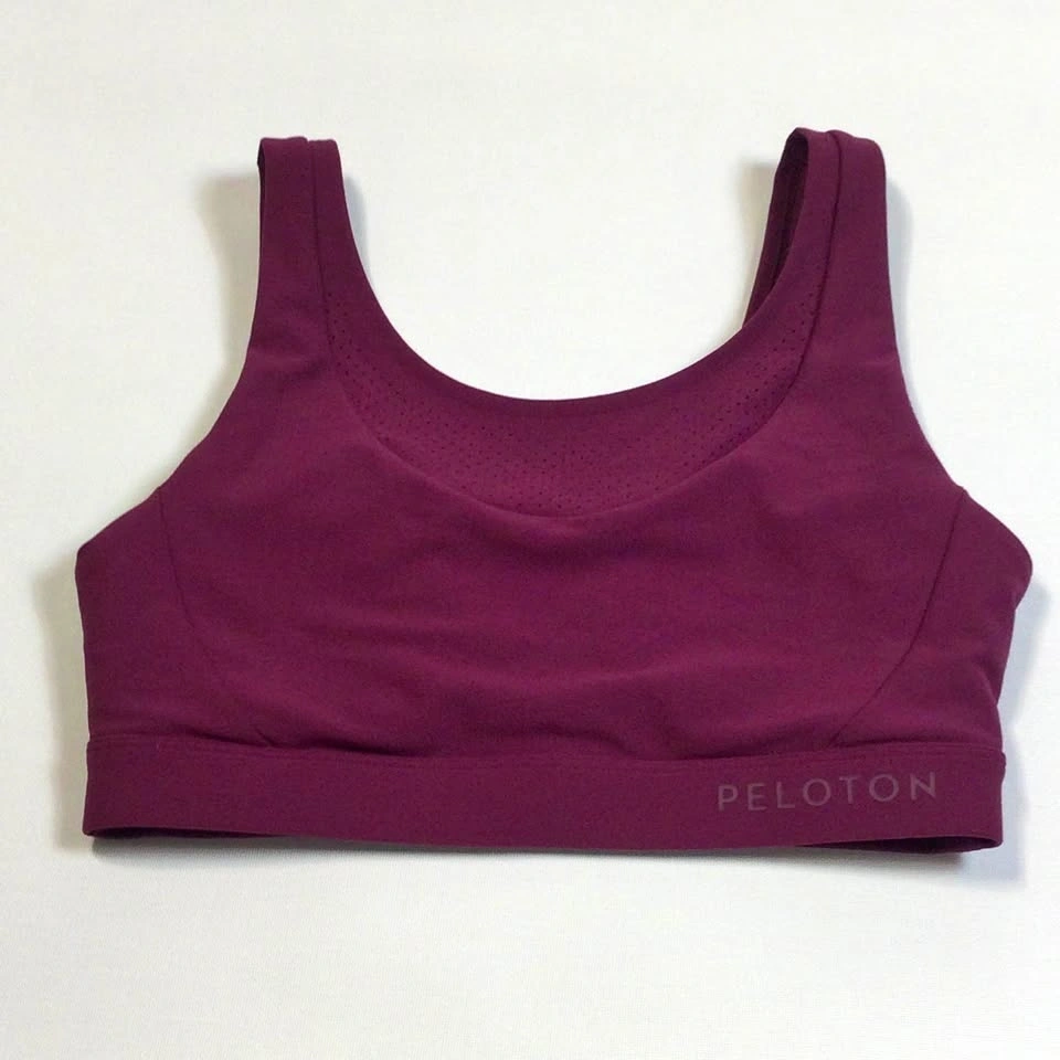 Comfy Peloton sports bra in plum color. Size M. Made with 71% polyester and 29% elastane for the shell, and 91% nylon, 9% elastane for the liner. Great for workouts or just chilling. New, missing tag. Cash only, public meetup in Manhattan / Hell's Kitchen.