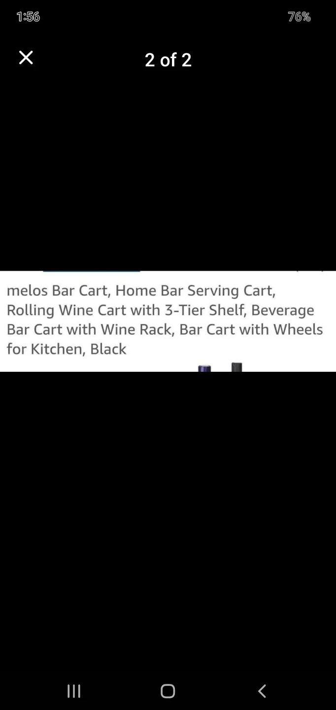 This is a black bar cart with a wine rack and three shelves. It measures 32.6" tall and 22.4" wide. It's on wheels for easy mobility.