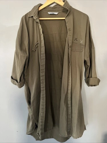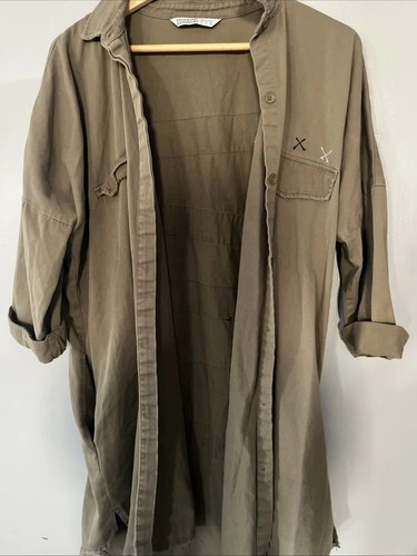 Zara Basics Tan Women's Long Cotton Shirt Size Large
