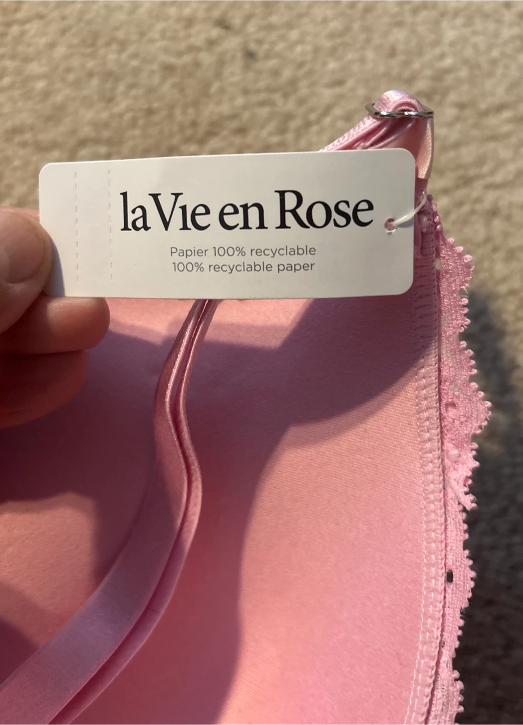 Pretty pink lace bra from La Vie en Rose. It's a size 36C. Brand New with tag! Features intricate lace detailing and a comfortable fit. Perfect for everyday wear!