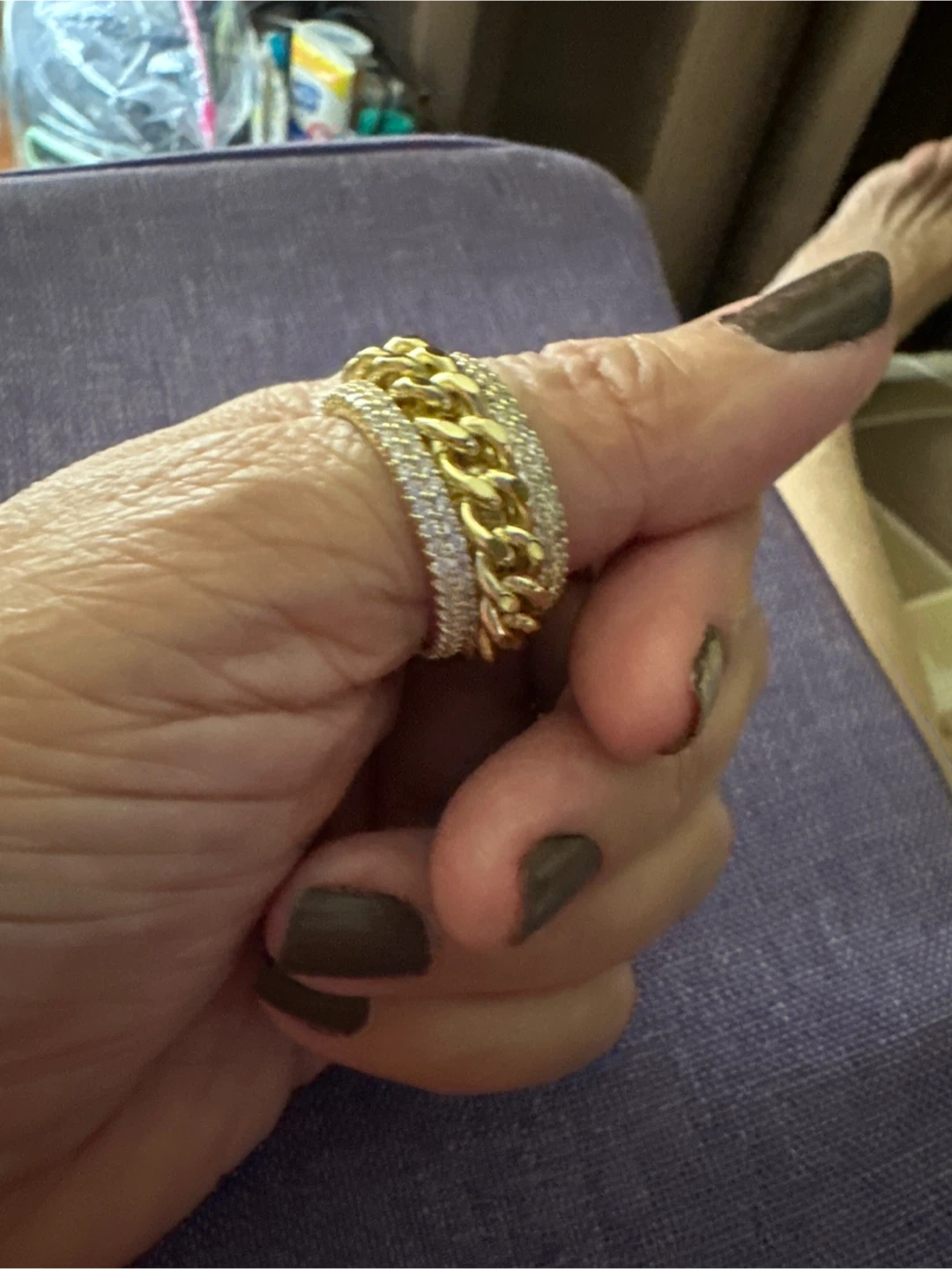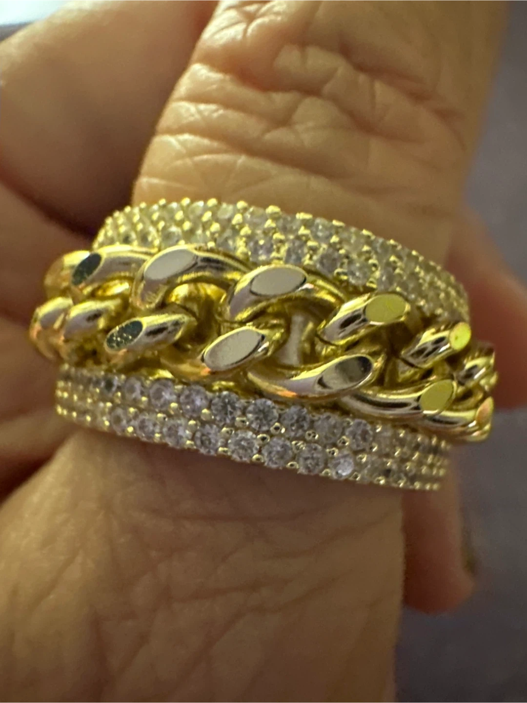 Gold Chain Link Ring with CZ Stones