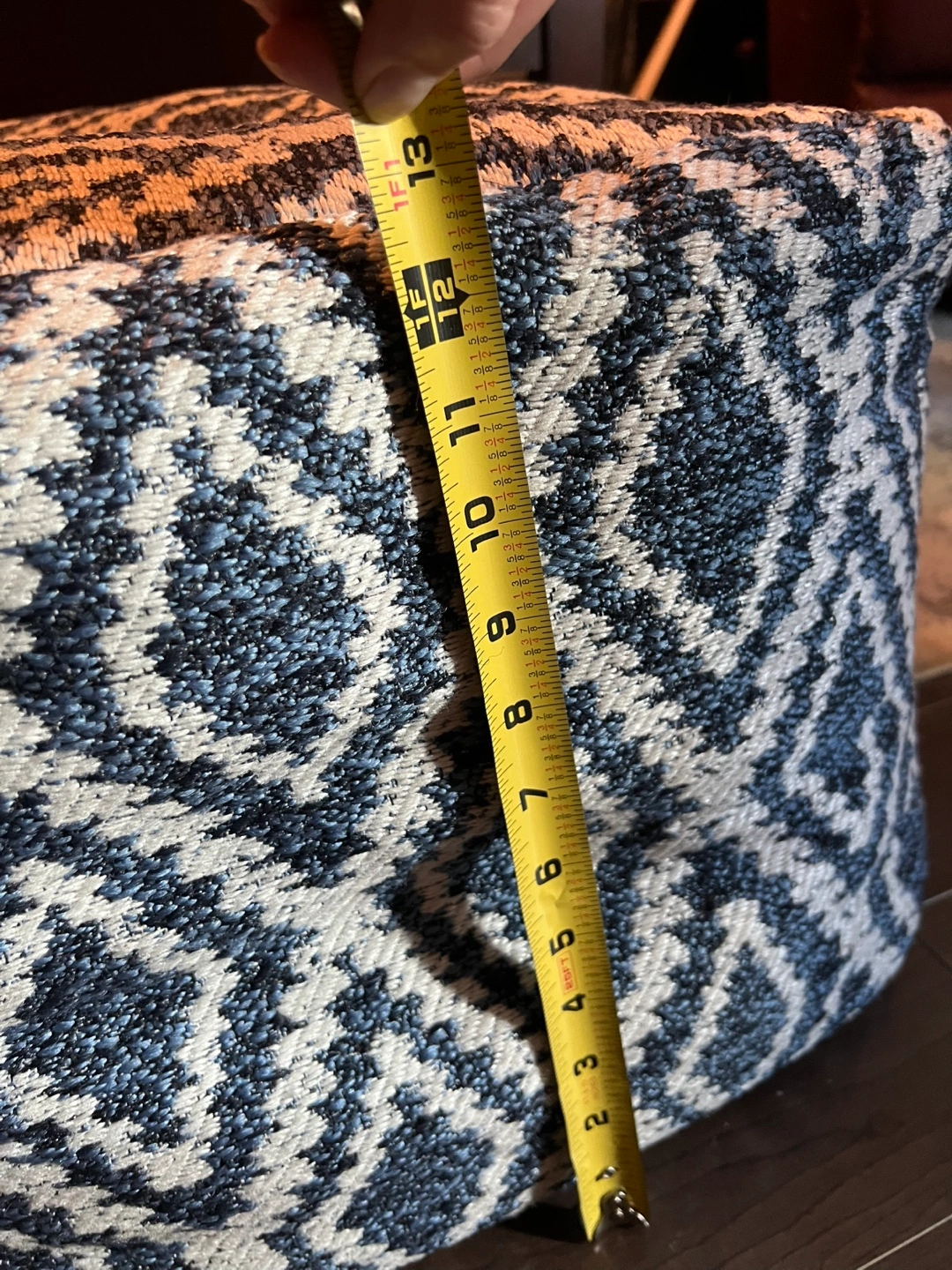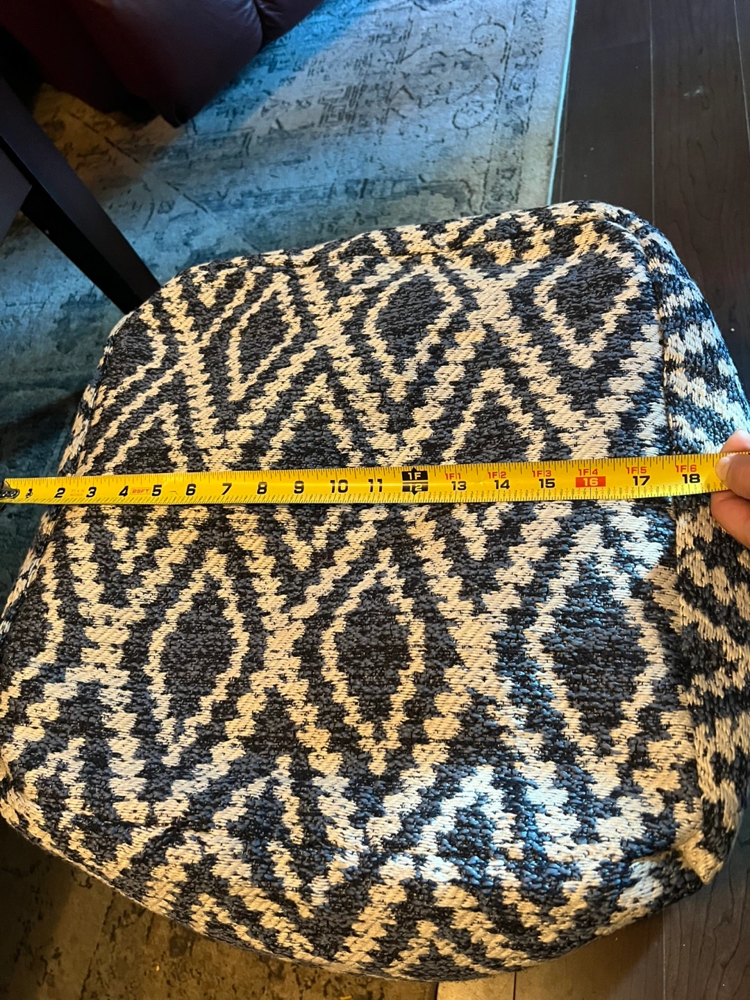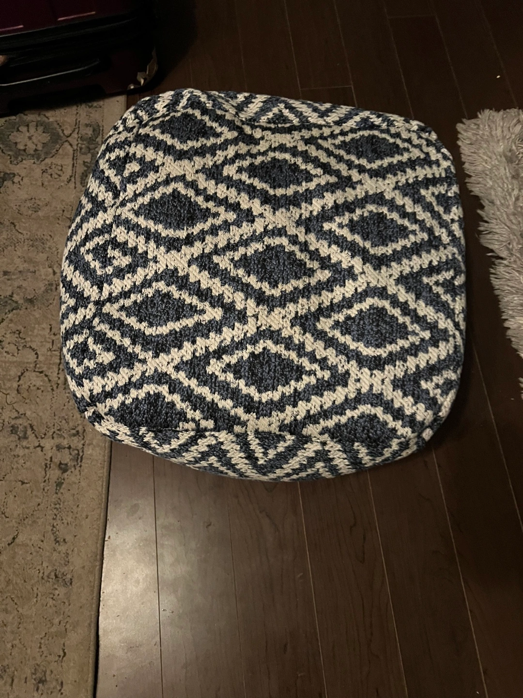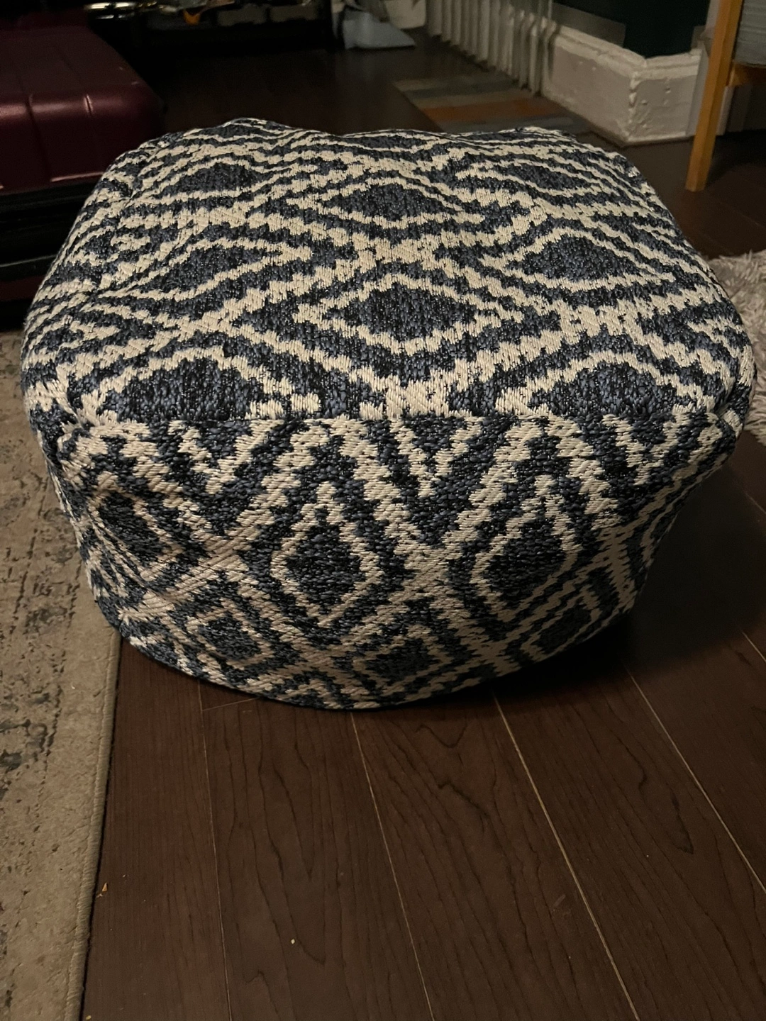** Move Out Sale** pouf ottoman Blue/White Geometric Patterned