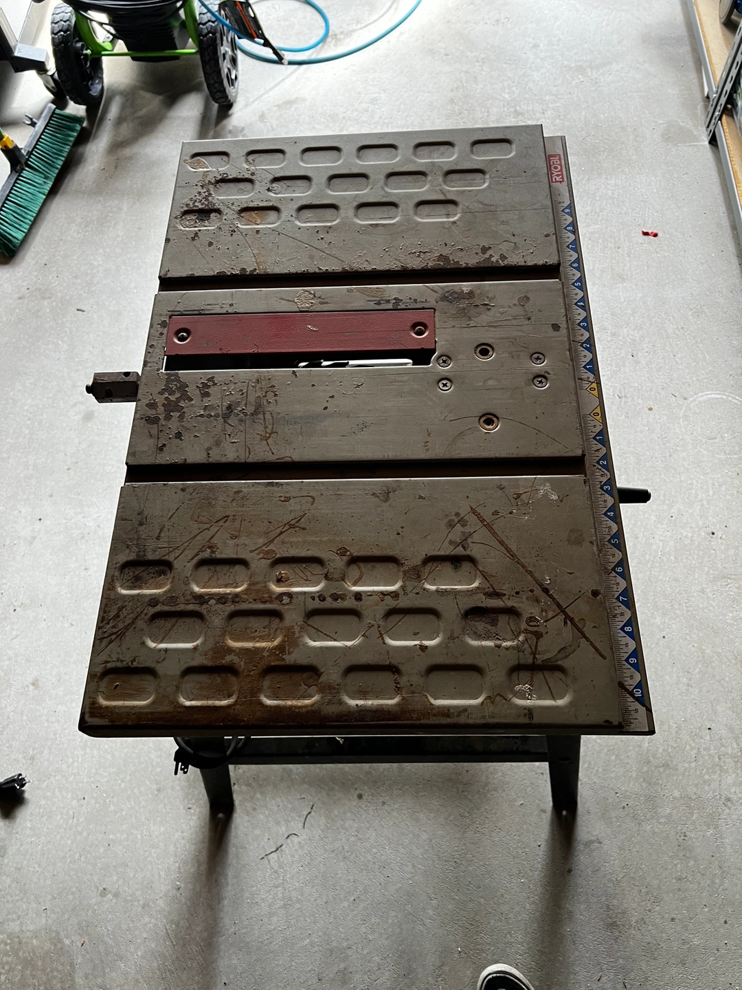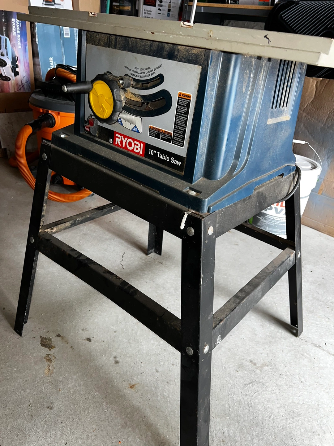 Well garage kept Ryobi 10” table saw. Comes with one blade.