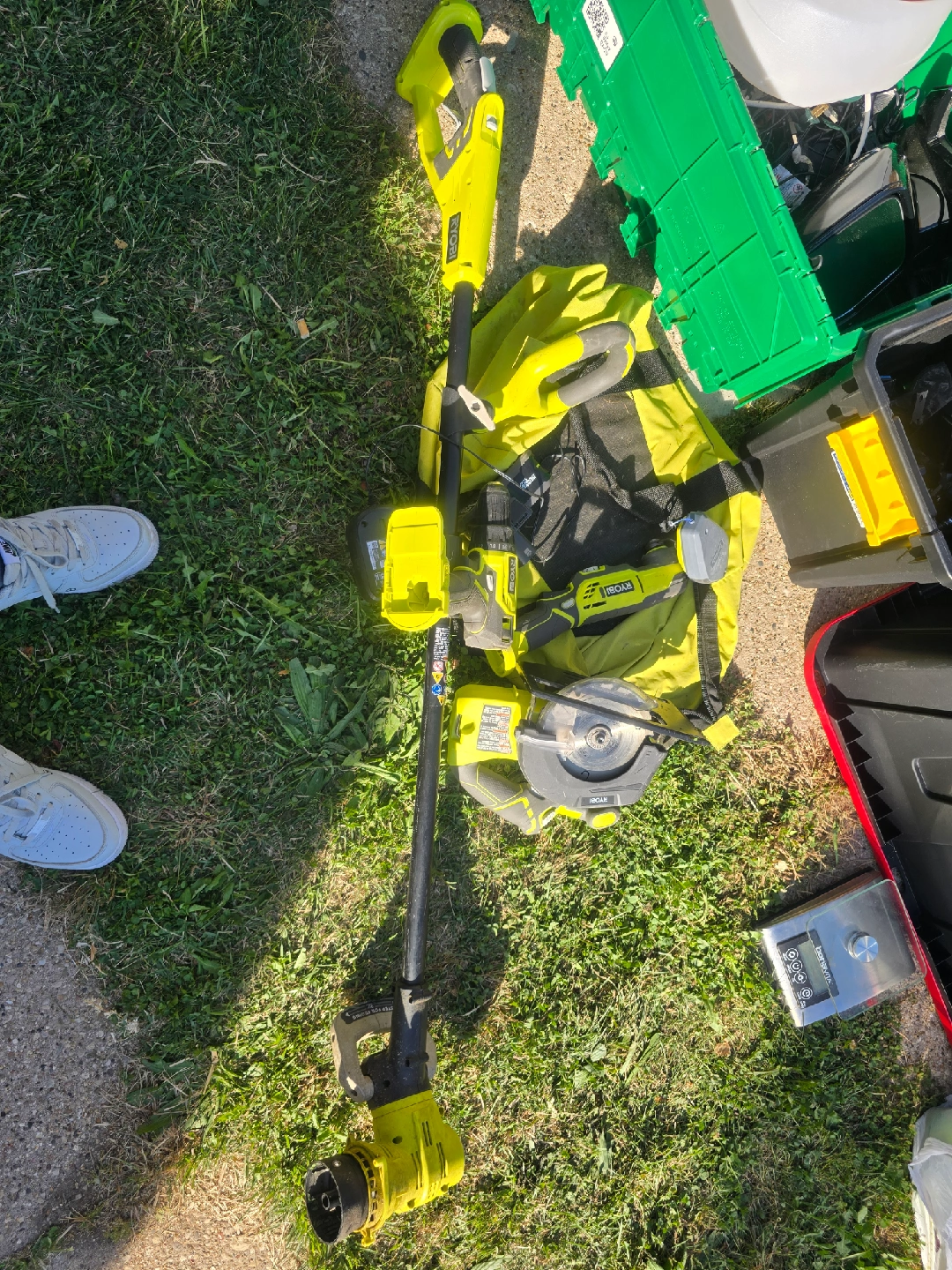 15I'm selling a Ryobi cordless string trimmer and circular saw set. Both tools are in good working condition and ready for your yard work or projects!