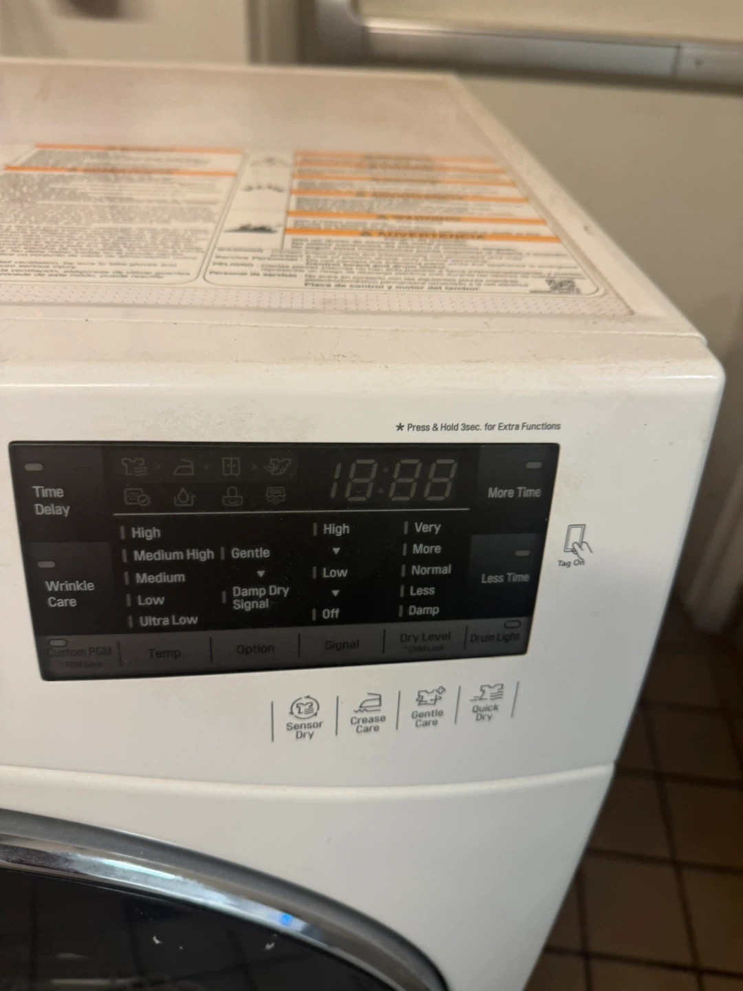Selling an LG Direct Drive washing machine. It has several wash cycles including cotton/normal, perm press, bulky/large, baby wear, and tub clean. It also has sensor dry and manual dry options.