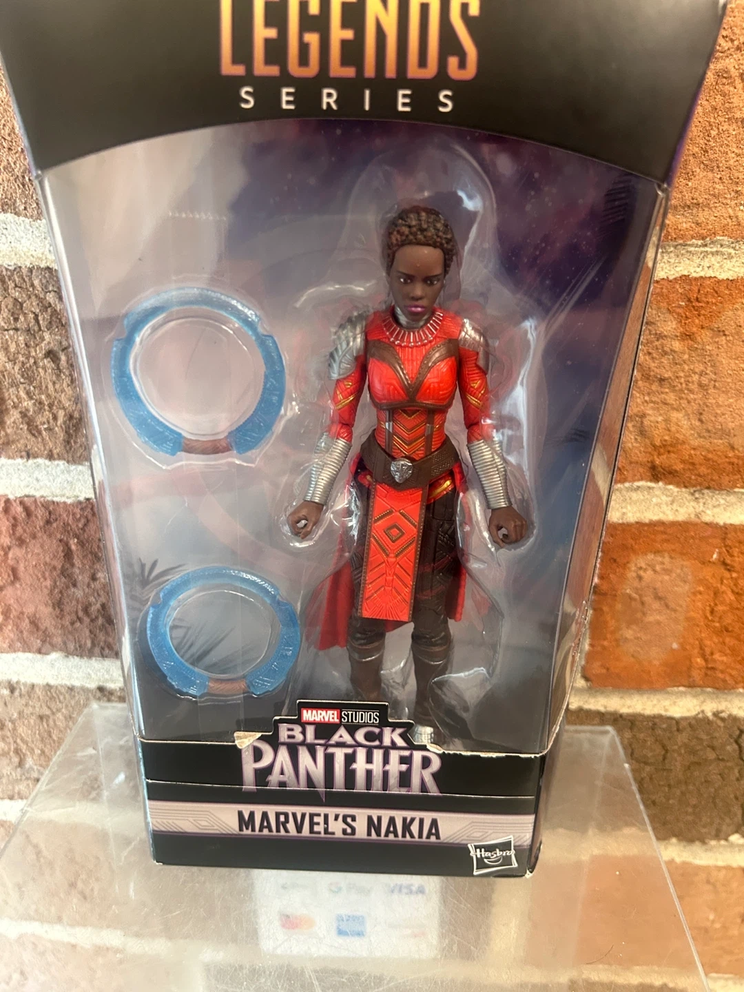 This is Marvel's Nakia action figure from the Black Panther Legends Series. It's from the Legacy Collection. It comes in its original packaging with accessories.