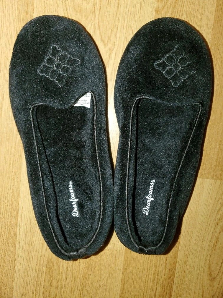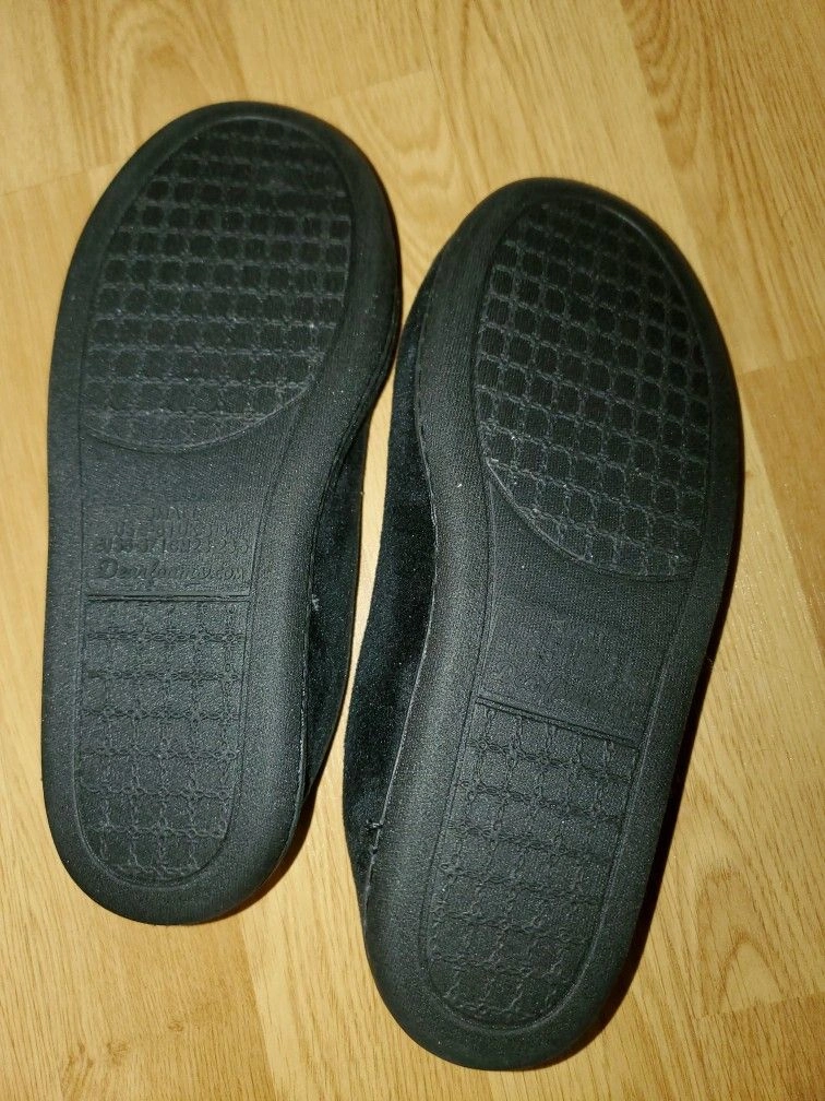 25Cash only, local pickup in the Town of Newburgh NY by Aldi's Size: 5 Color: Black Style: Moccasin slippers Brand: Dearfoams