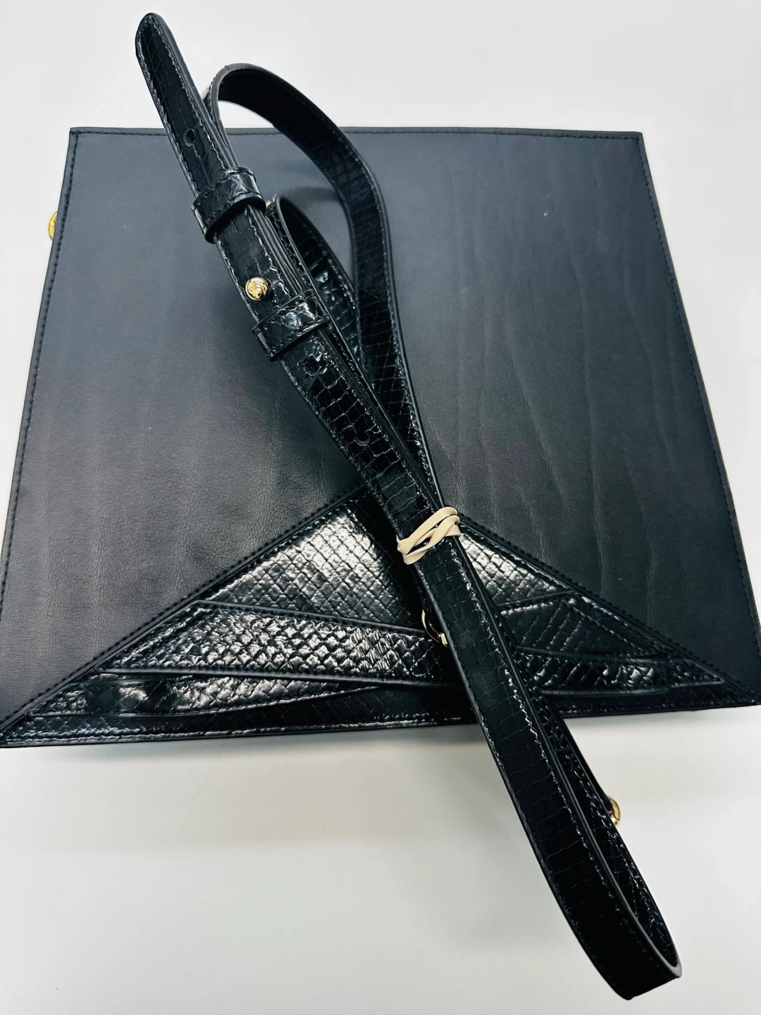 Black Calf Leather Clutch with embossed snakeskin Detail