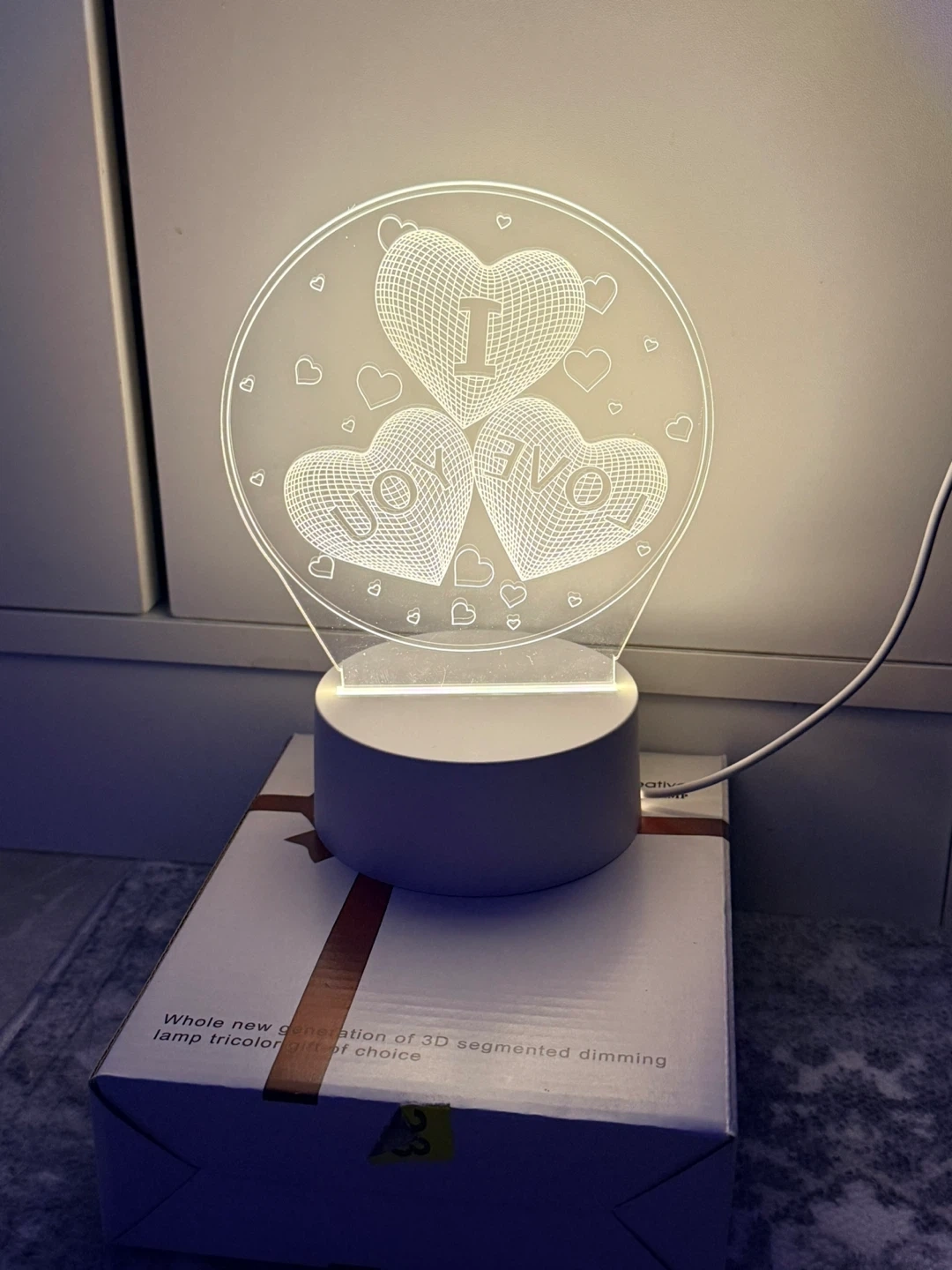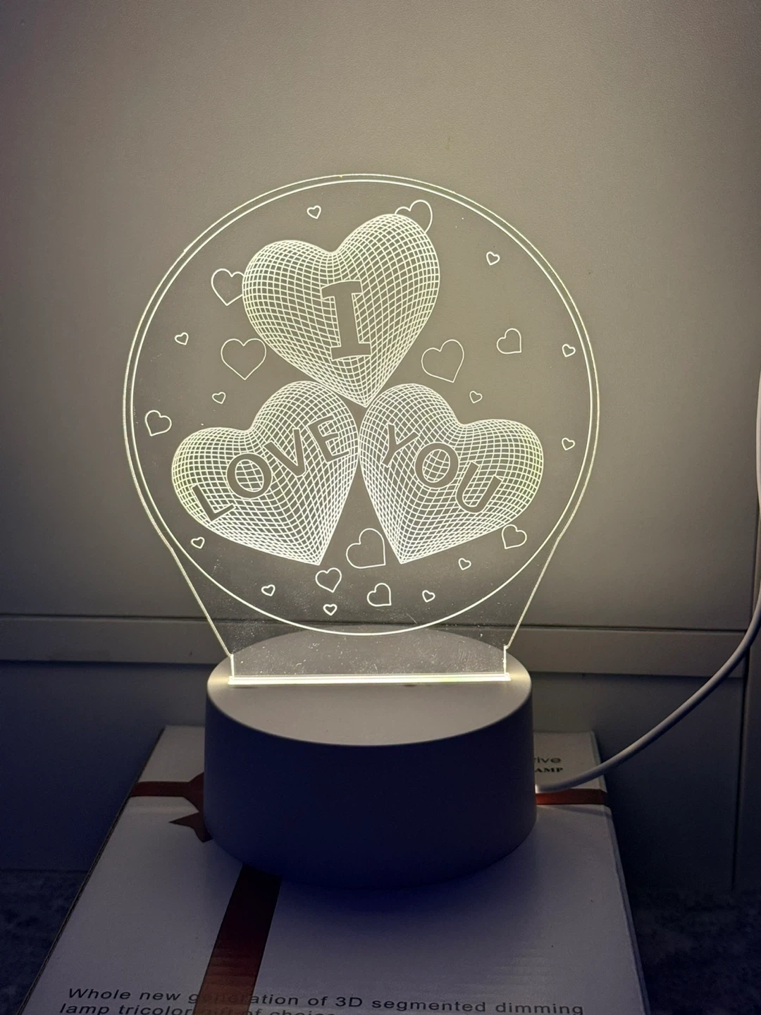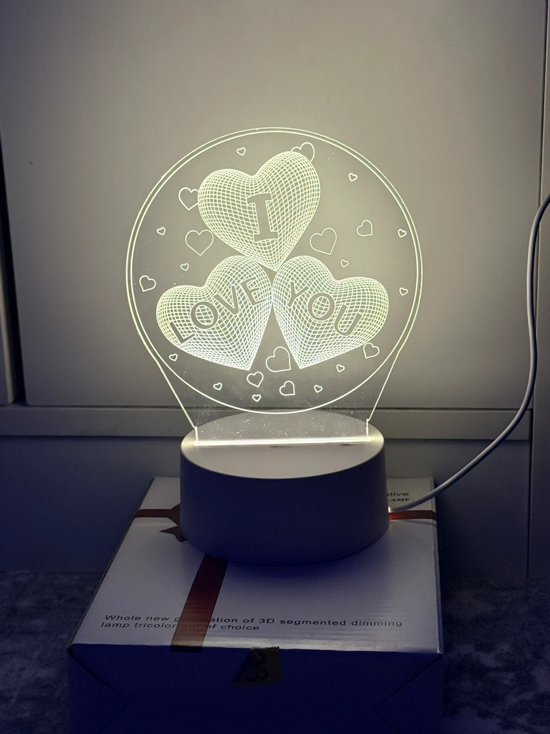 Buy & Sell3D Creative Visualization Lamp3D Creative Visualization Lamp$15This is a 3D visualization lamp with a 'I Love You' heart design. It features segmented dimming and tricolor lighting. It's powered by a USB cable.ConditionNewBrand3D CreativeWHERE TO MEETCheck LocationView MapSELLERverifiedRetishaMurray Hill670 reviews0 chats·0 favorites·9 viewsSEND CHAT TO SELLERHi Retisha! I’m interested in your listing.Hi Retisha! I’m interested in your listing.Get the Karrot app to chatSign In to chat