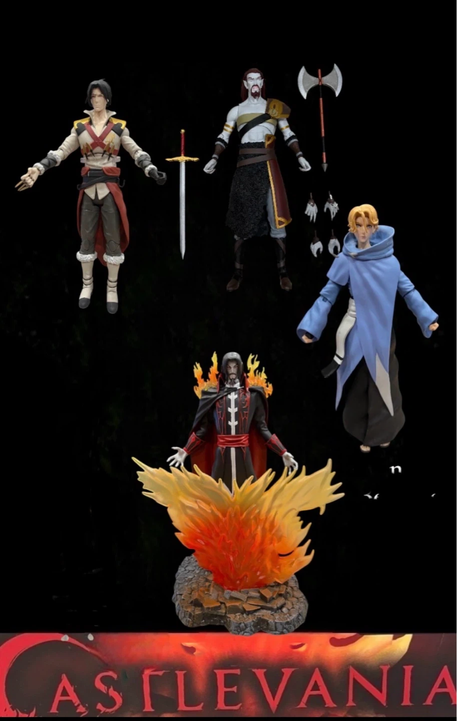 Collectibles from the Castlevania series. Includes Trevor Belmont, Dracula, and other characters. Figures are detailed and poseable. Open box good condition Great for any fan!