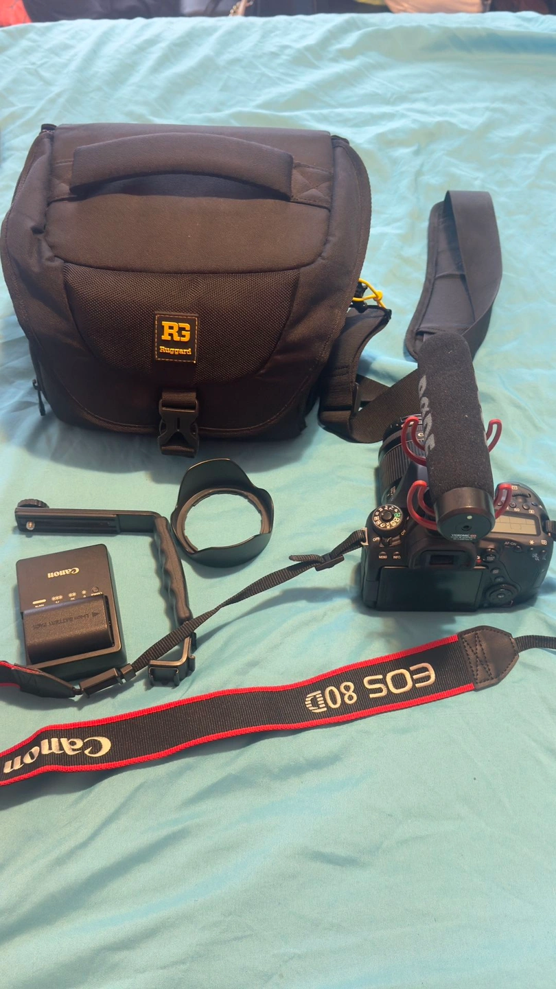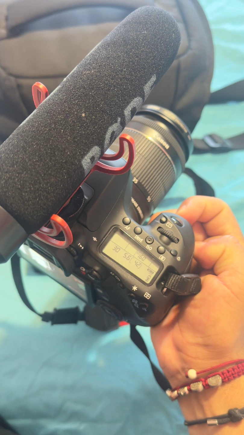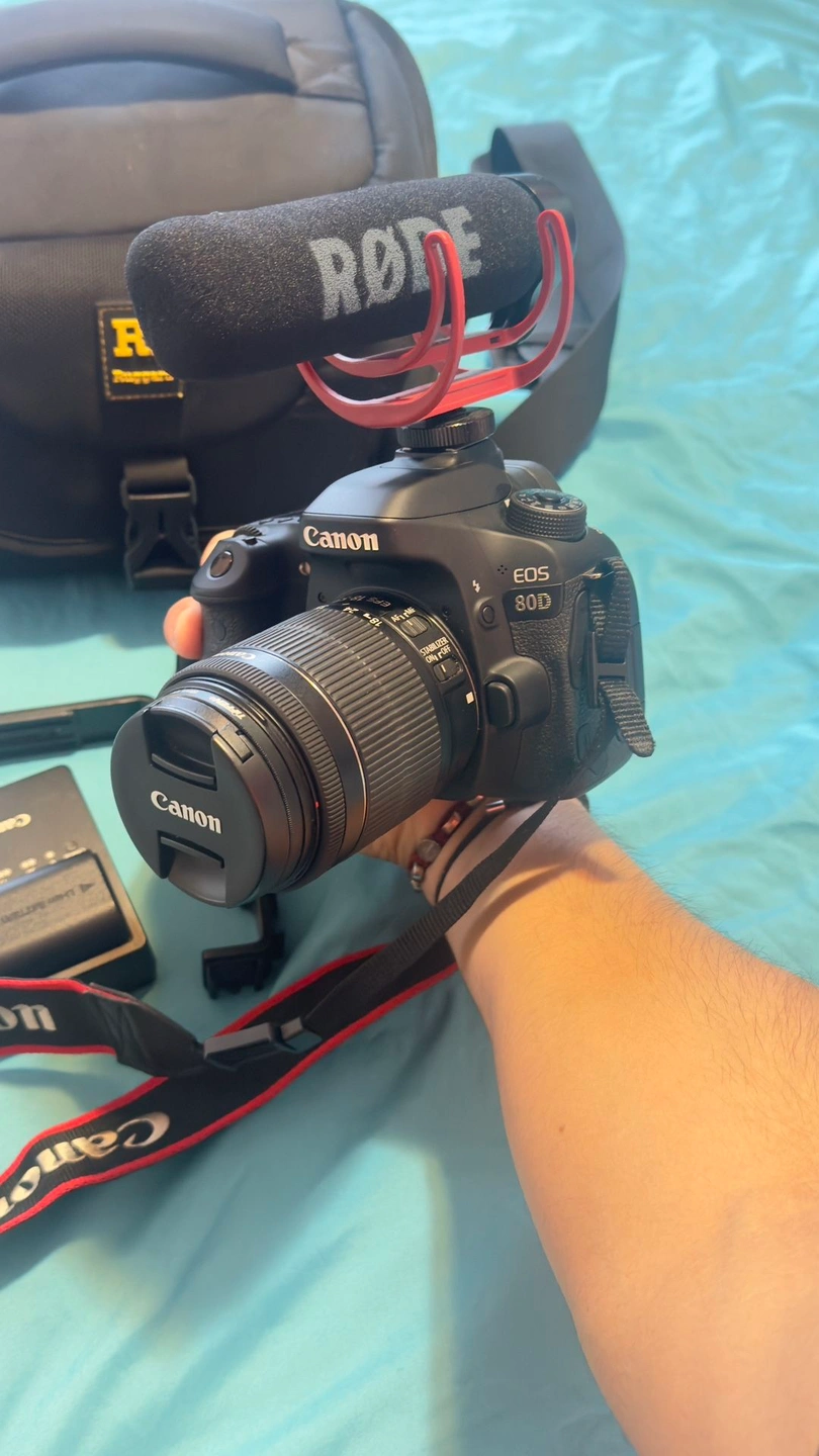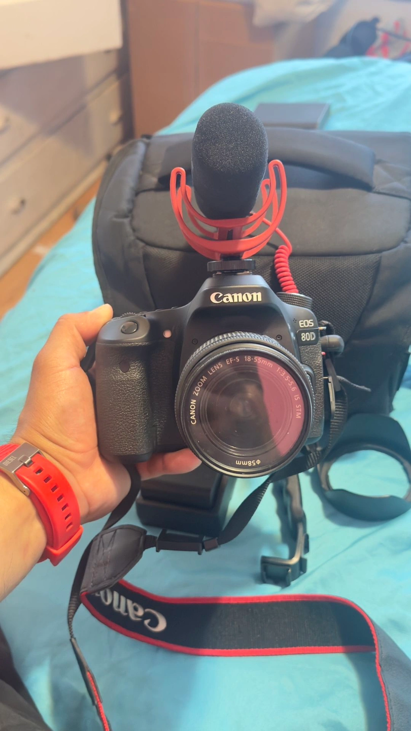 The camera is in perfect condition, almost new. I honestly haven't used it. I want someone to put it to better use. I'll give it to you with a bag, two batteries, a Rode microphone, a handheld stand, and an 18-55mm lens.