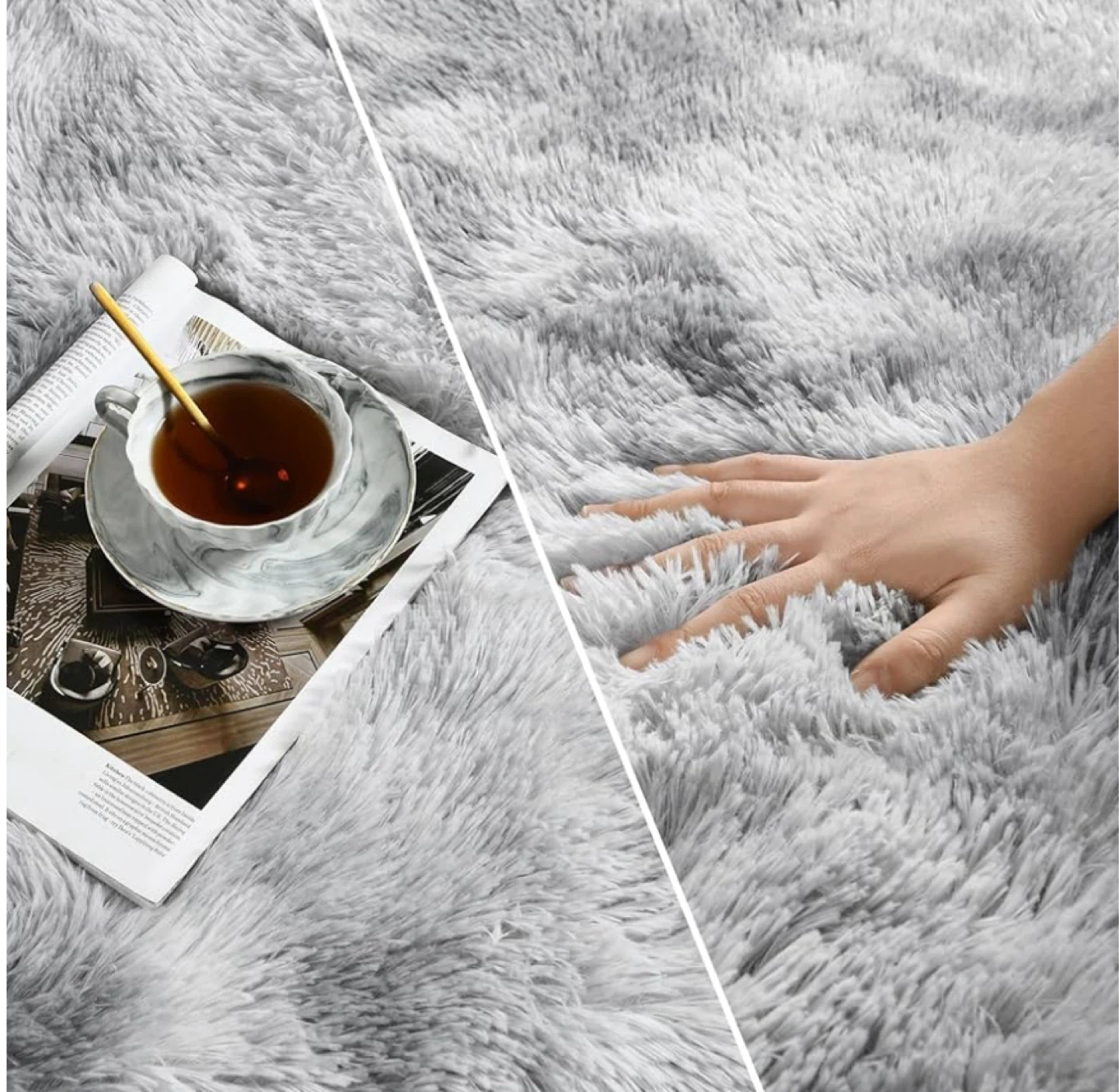 Rugs are vacuum compressed for eco-friendly packaging. They may appear less fluffy and have creases upon arrival. Lay flat for 2-3 days to restore their full fluffiness