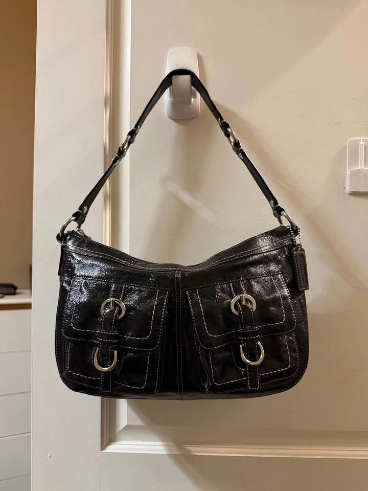 Y2K Vintage COACH Black Patent Leather Shoulder Bag