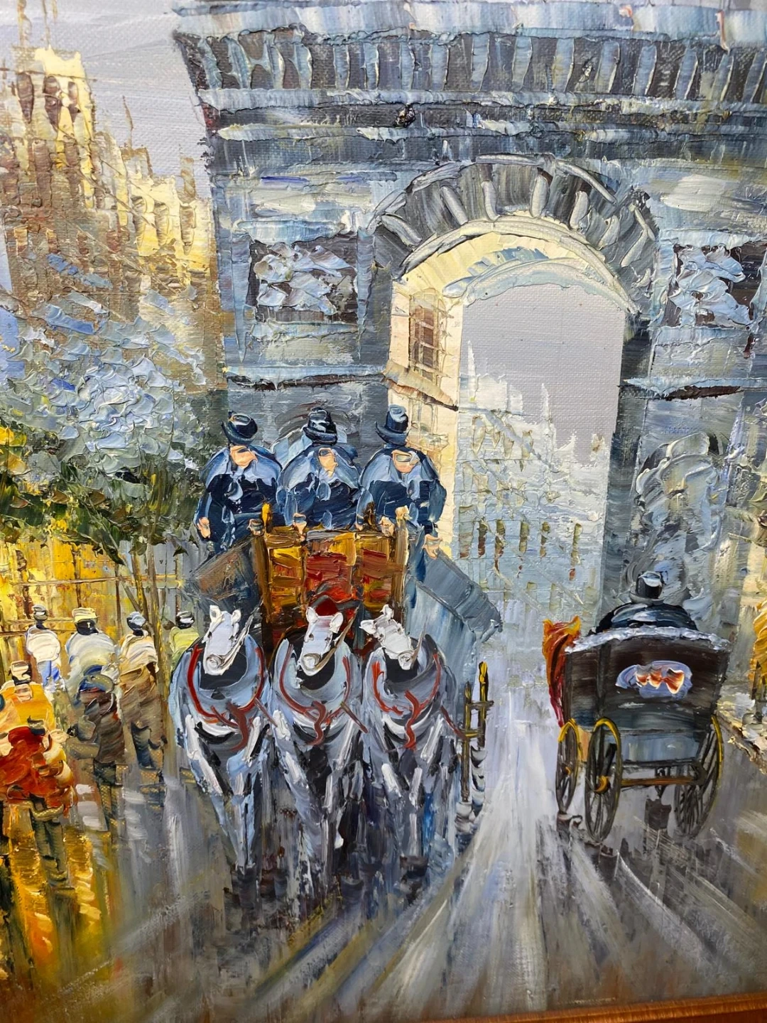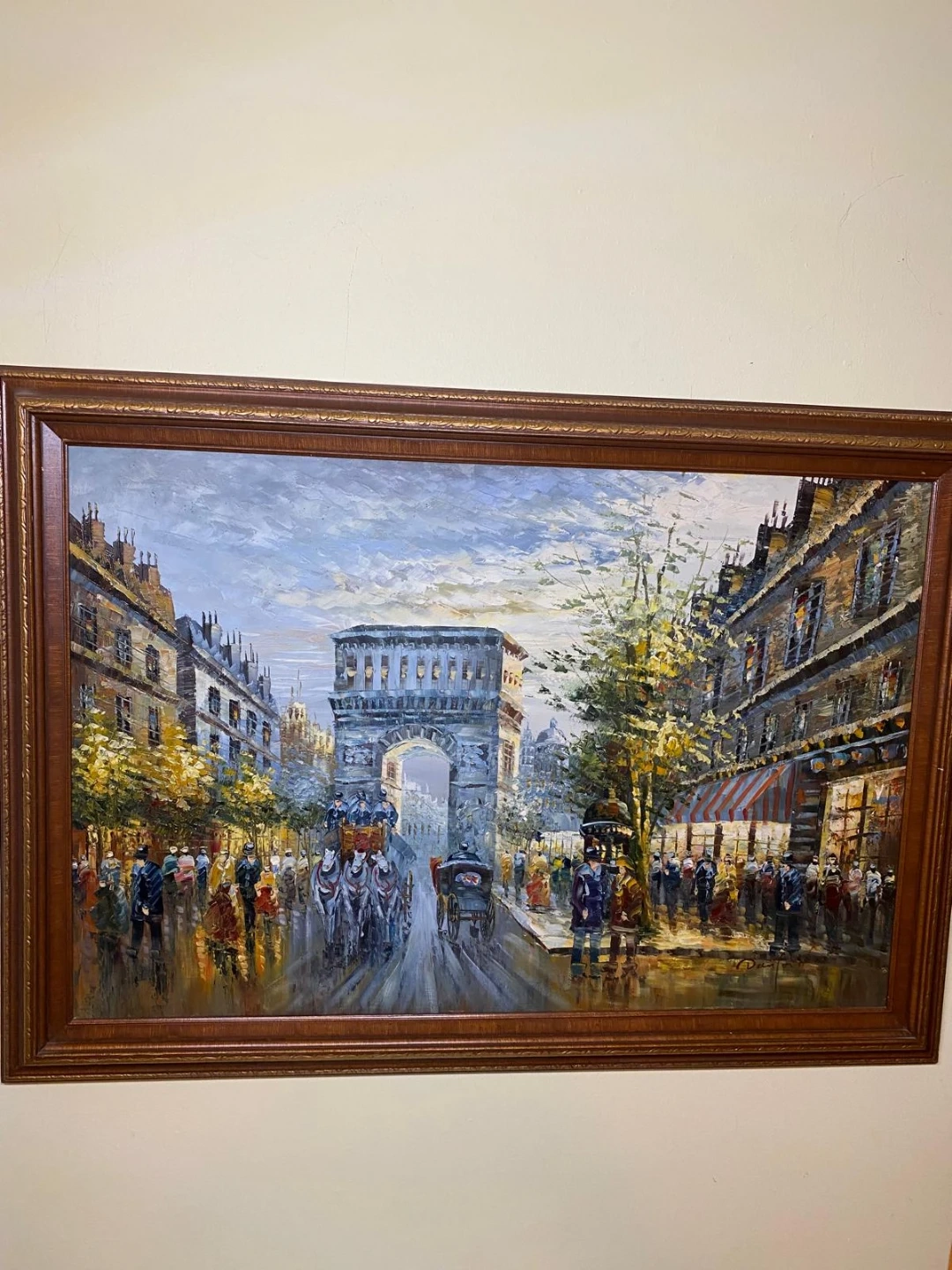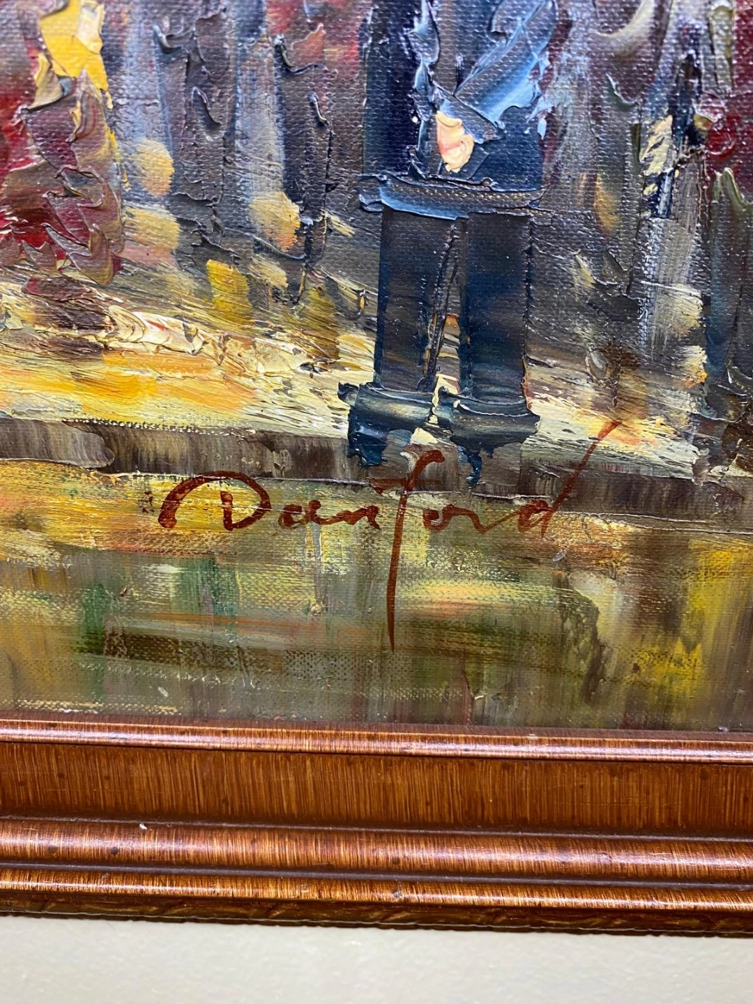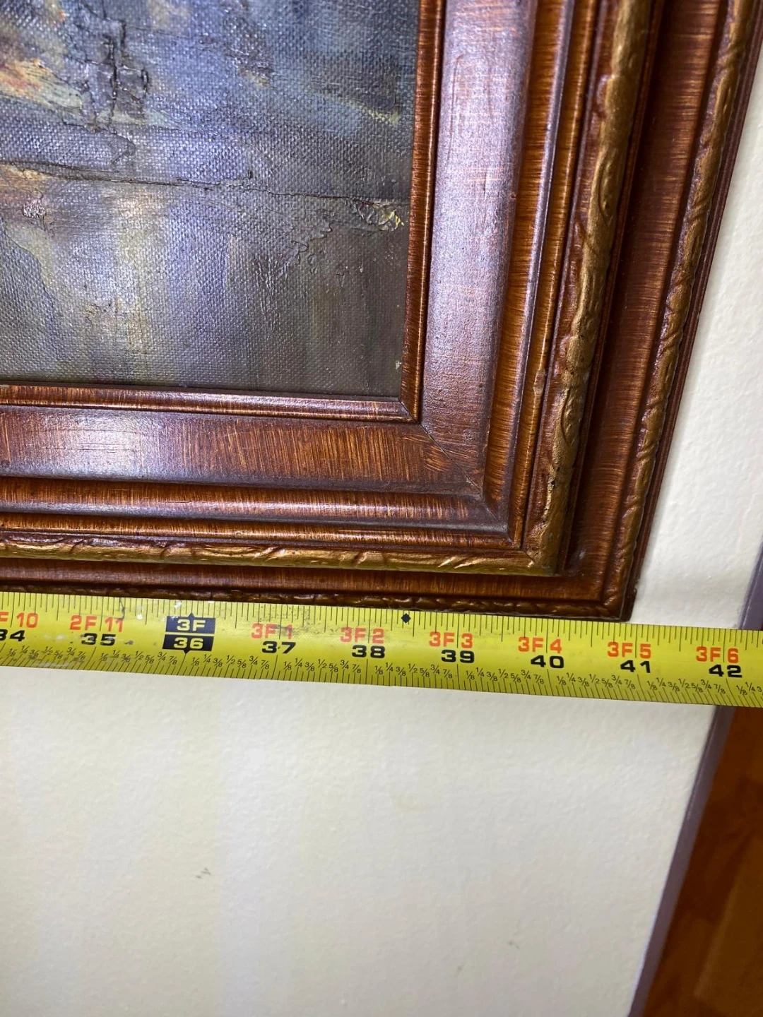 Original oil painting in a frame. The frame measures approximately 41 inches in length and 25 inches in height. It is signed by the artist.