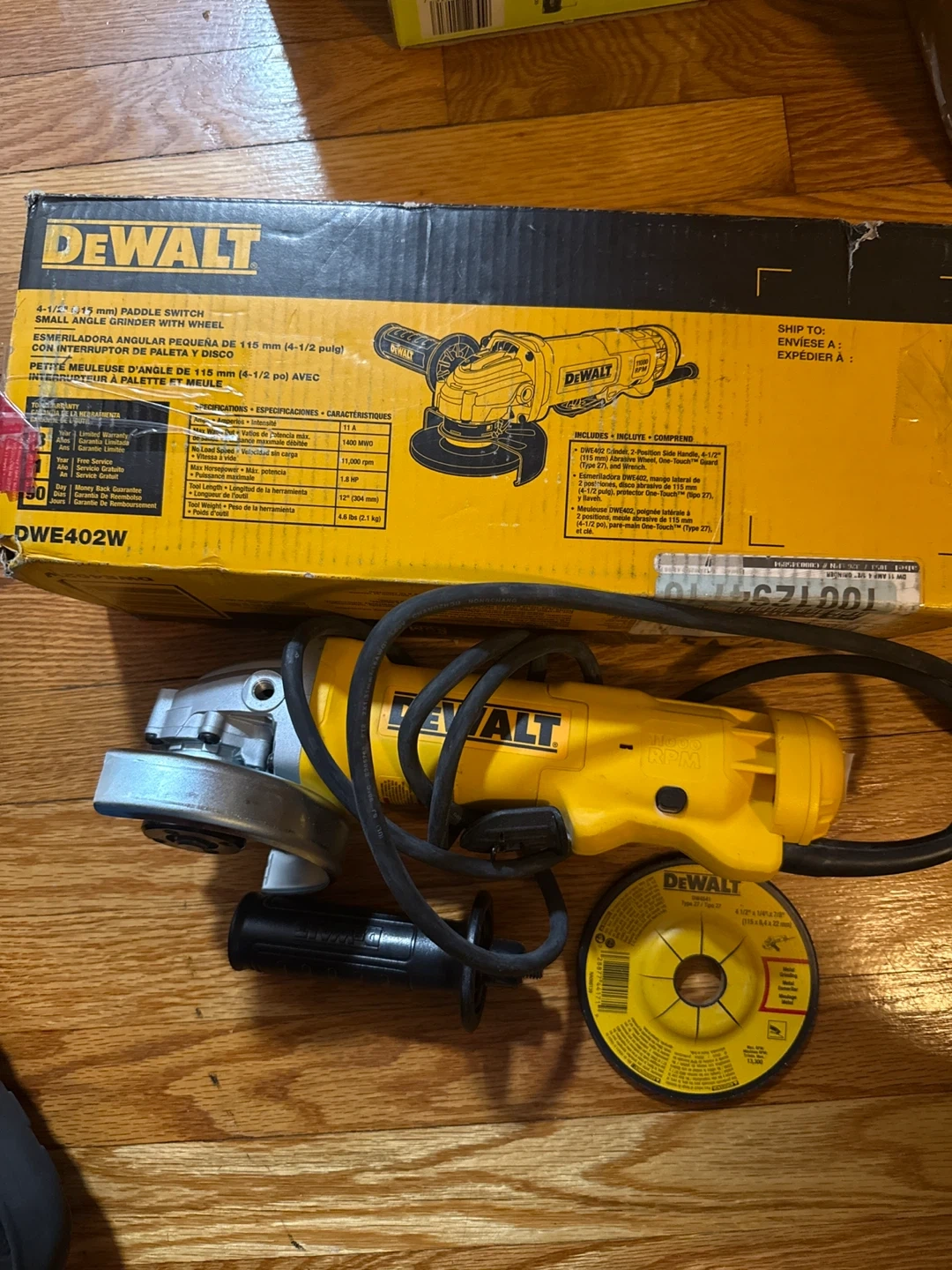 Selling a DeWalt DWE402 4 1/2" (115mm) Angle Grinder. It comes with the box.