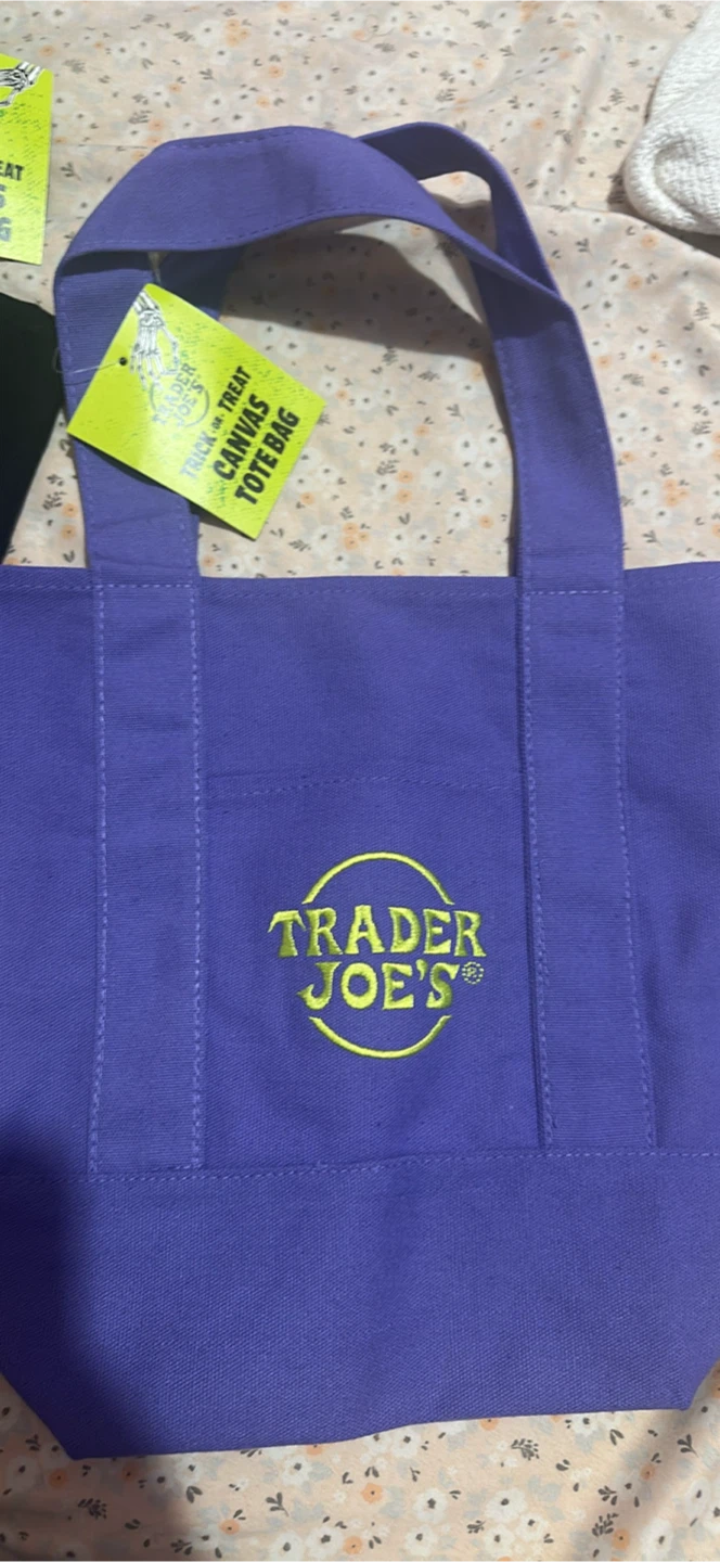 I'm selling two Trader Joe's canvas tote bags! One is black and the other is purple. Both are in great condition and ready for your next grocery run or everyday errands