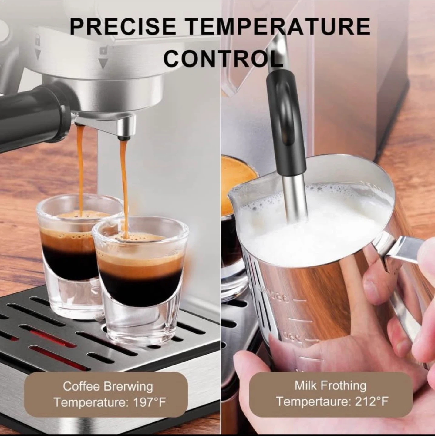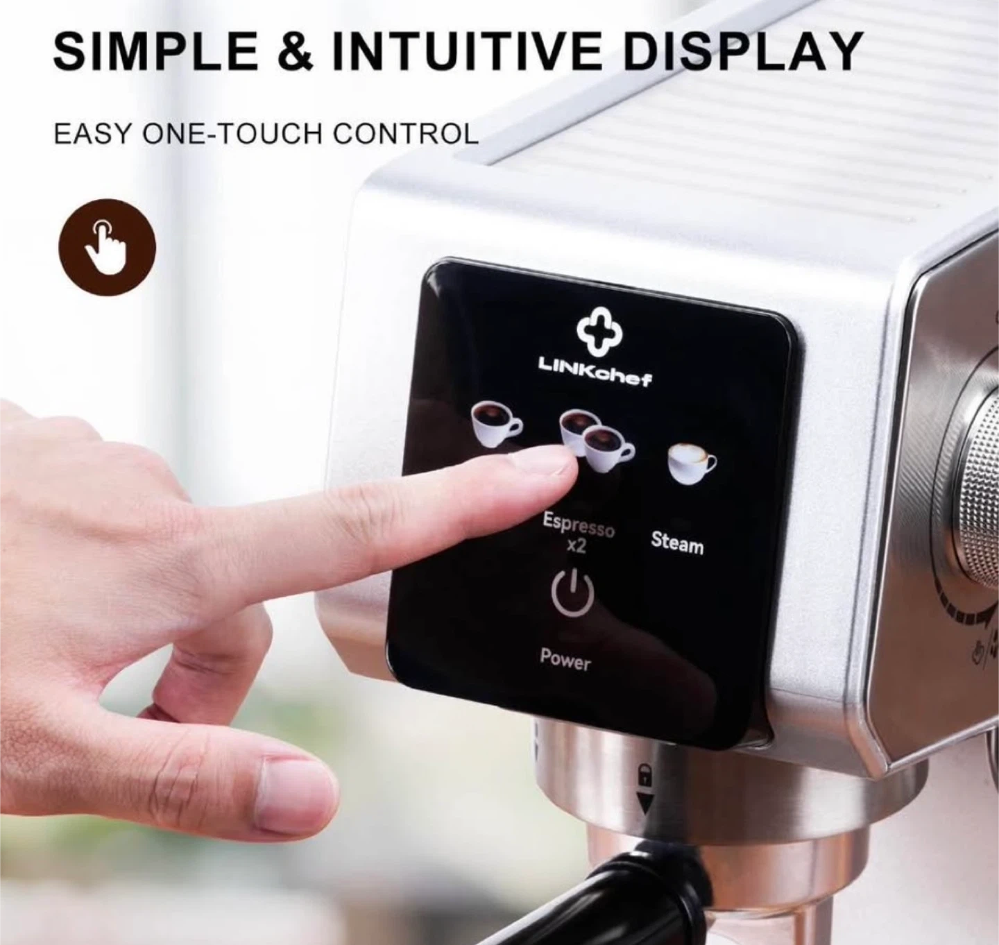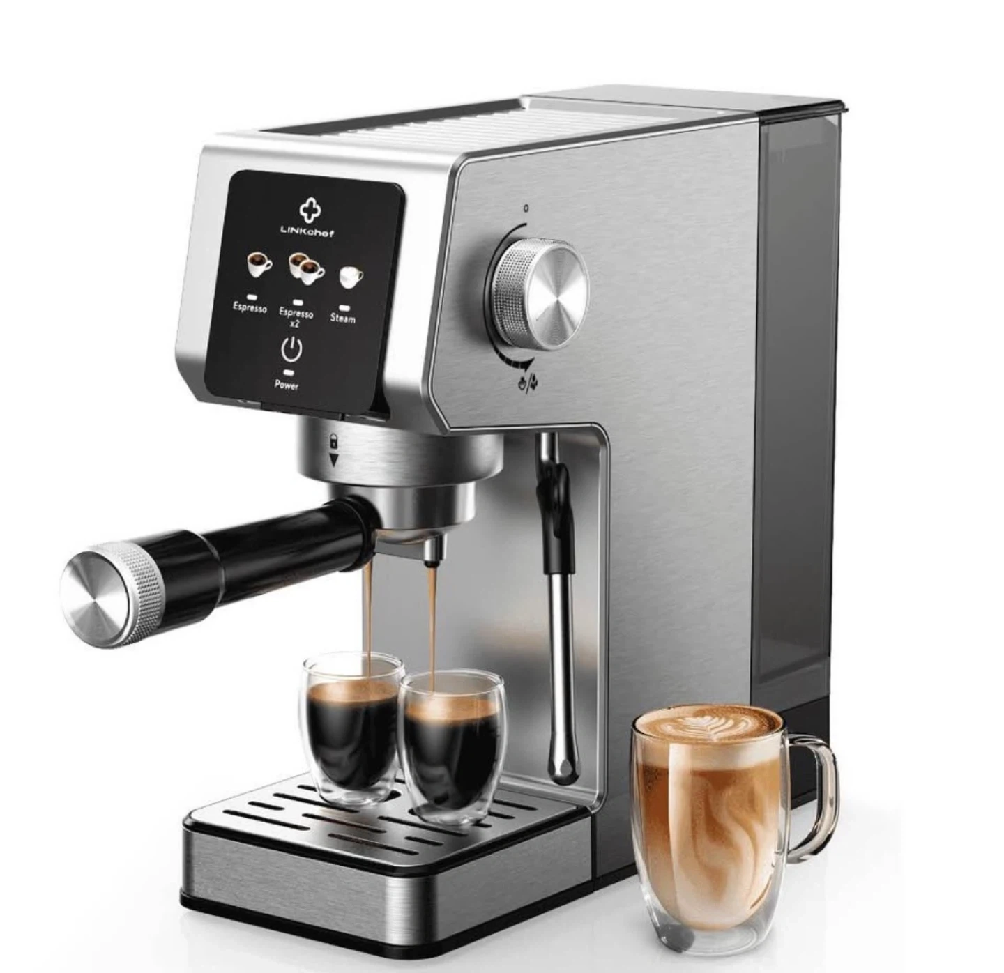 LINKCHEF Espresso Machine 20 Bar, Professional Espresso Maker with Milk Frother Steam Wand original Italian pump and a powerful 1300W instant thermo-block heating system for the ideal pressure, temperature, and volume to extract espresso flawlessly. Make single or double espresso shots.