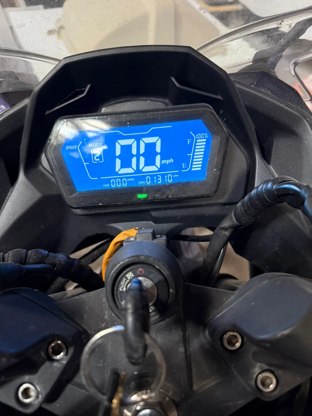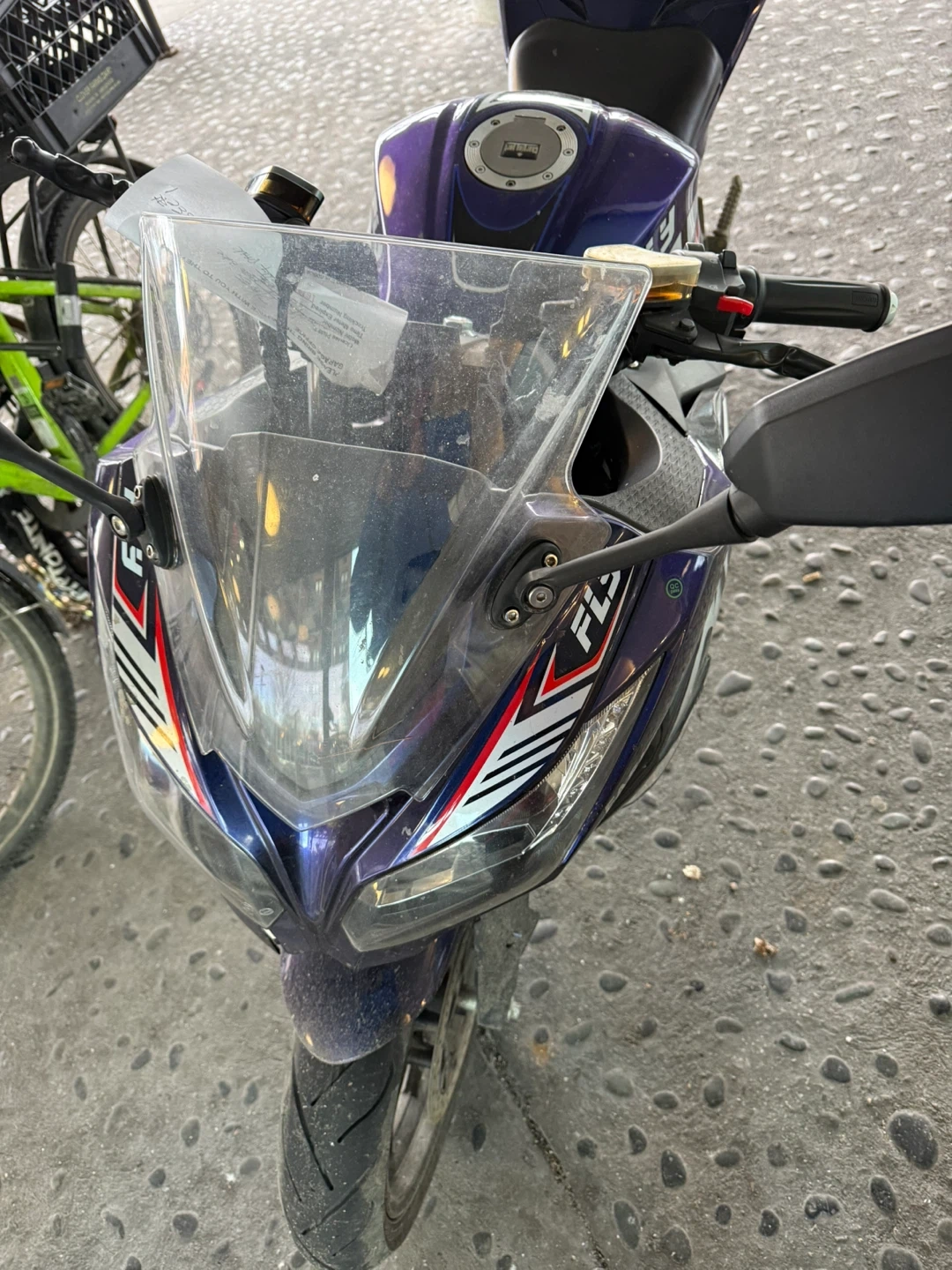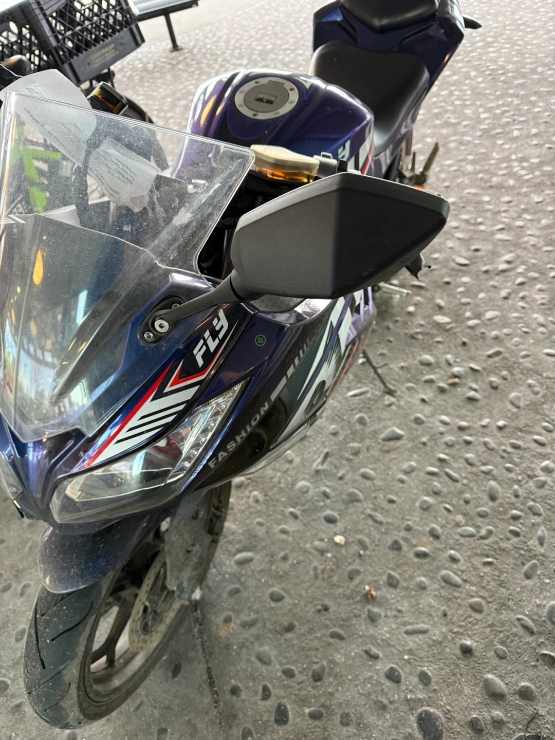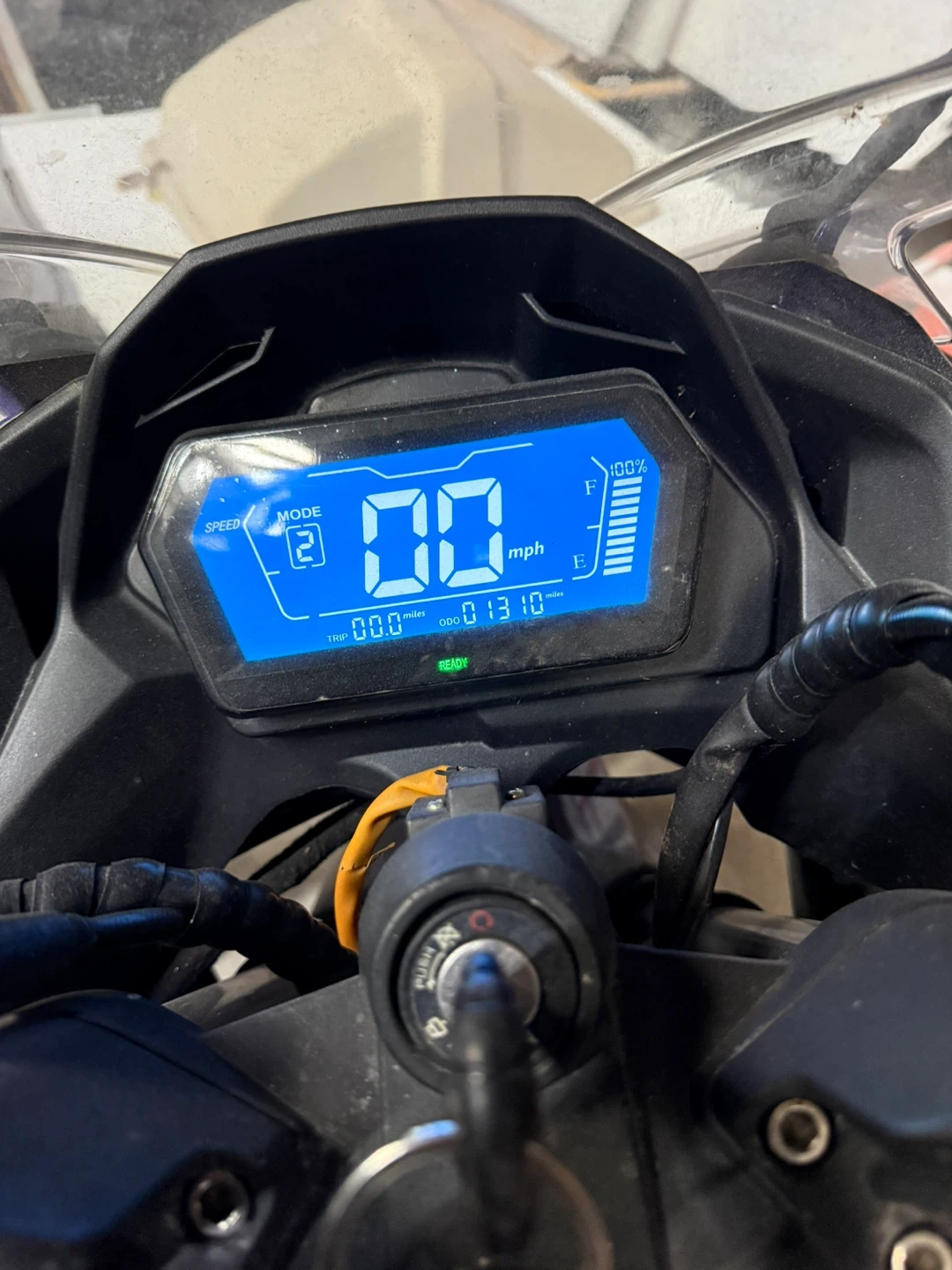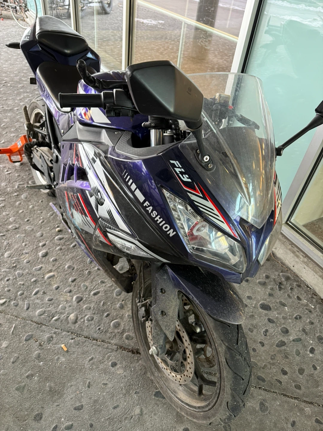 This is a FLY E-BIKE motorcycle. It's electric and features a stylish design. Its sleek frame and electric motor make it a modern way to get around!