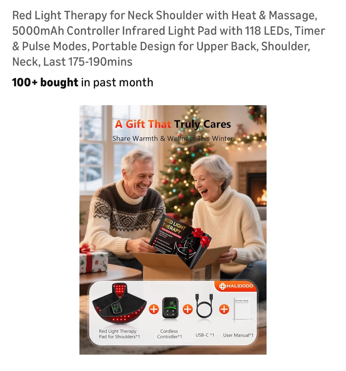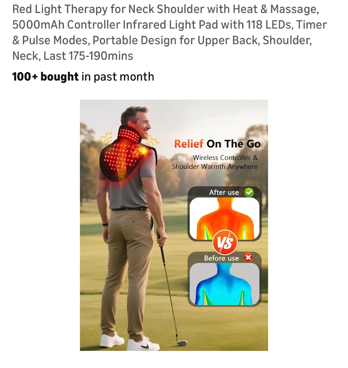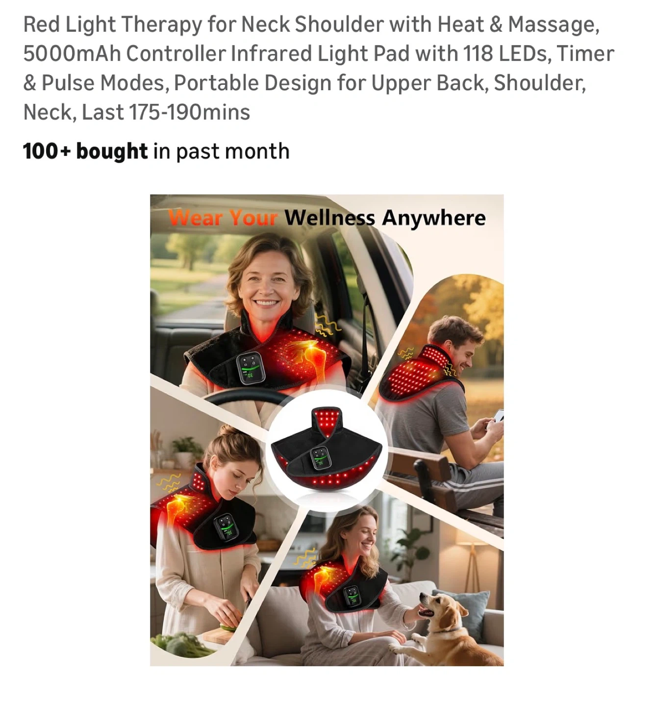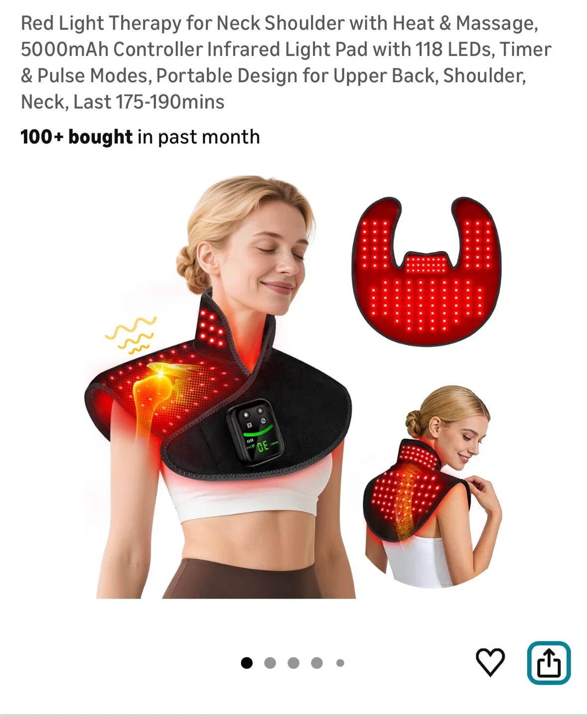 Red Light Therapy for Neck Shoulder with Heat & Massage, 5000mAh Controller Infrared Light Pad with 118 LEDs, Timer & Pulse Modes, Portable Design for Upper Back, Shoulder, Neck, Last 175-190mins