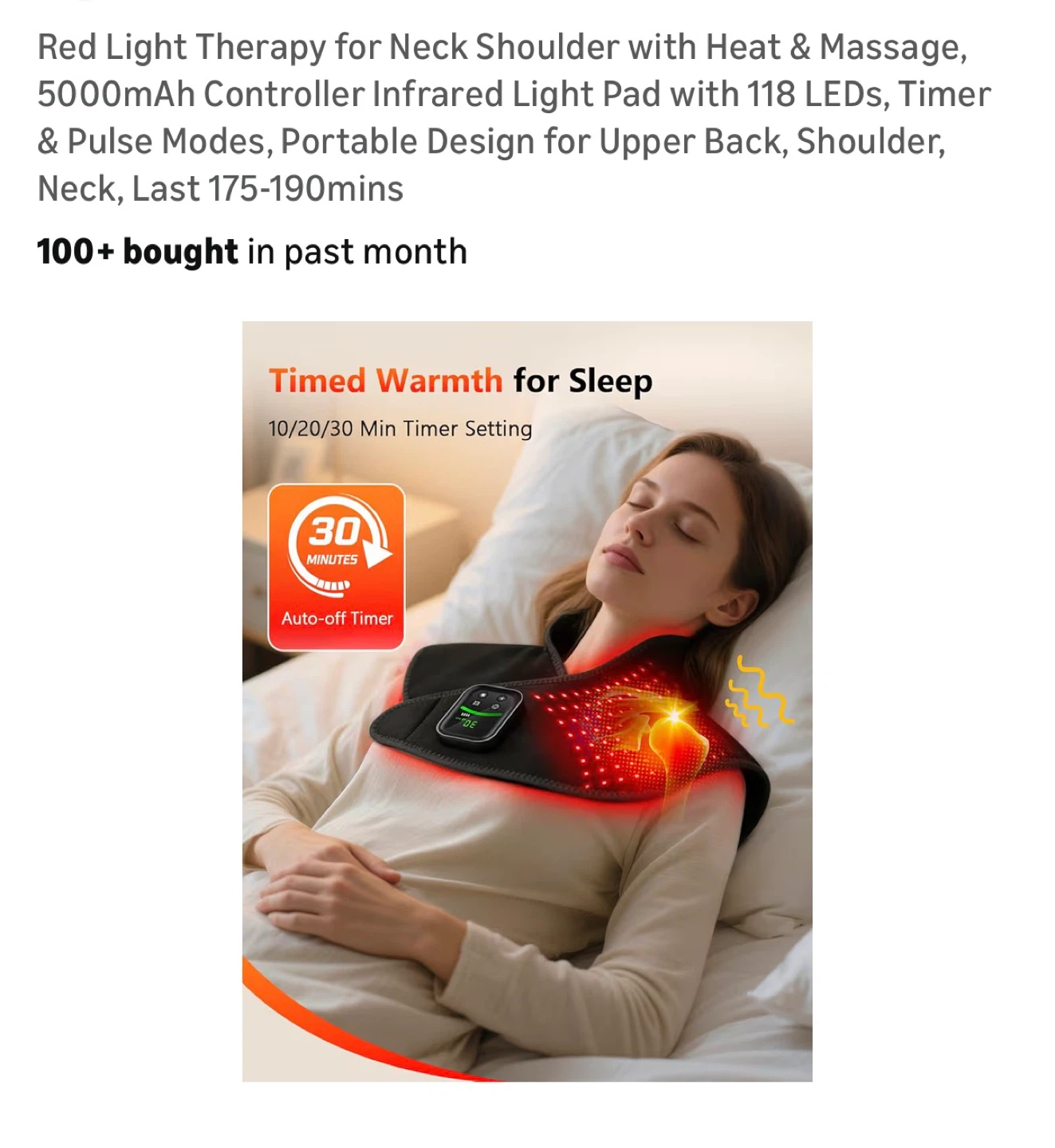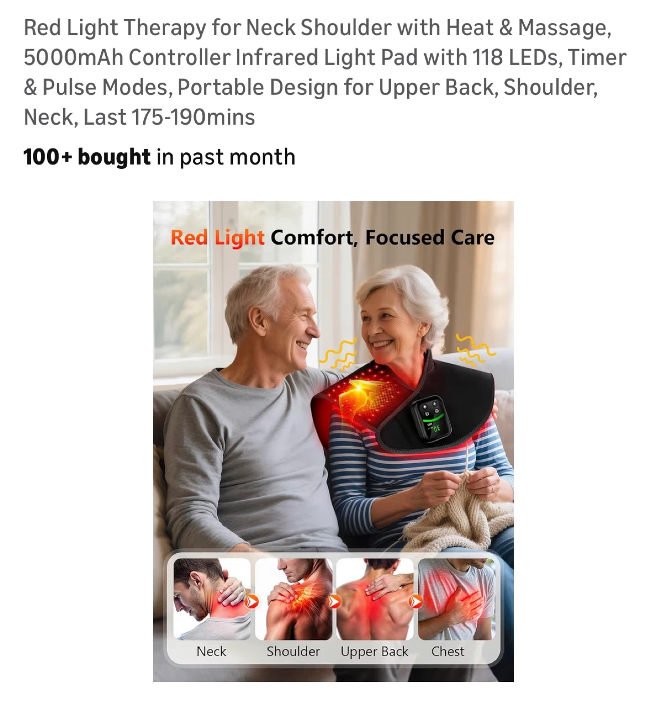 Red Light Therapy for Neck Shoulder with Heat & Massage, 5000mAh Controller Infrared Light Pad with 118 LEDs, Timer & Pulse Modes, Portable Design for Upper Back, Shoulder, Neck, Last 175-190mins