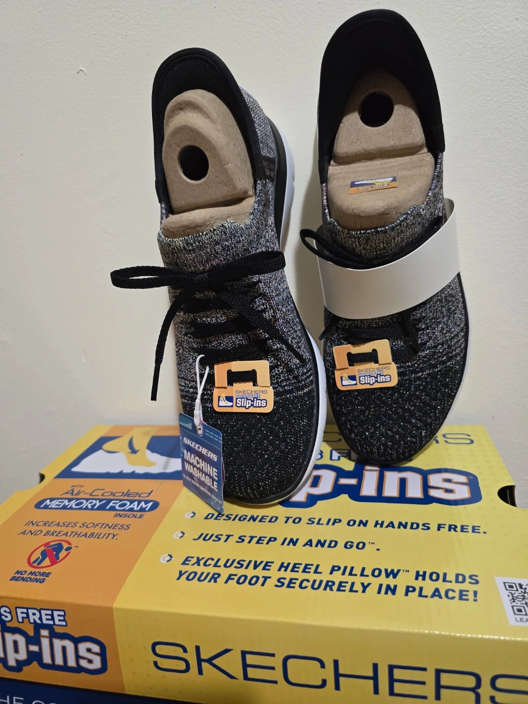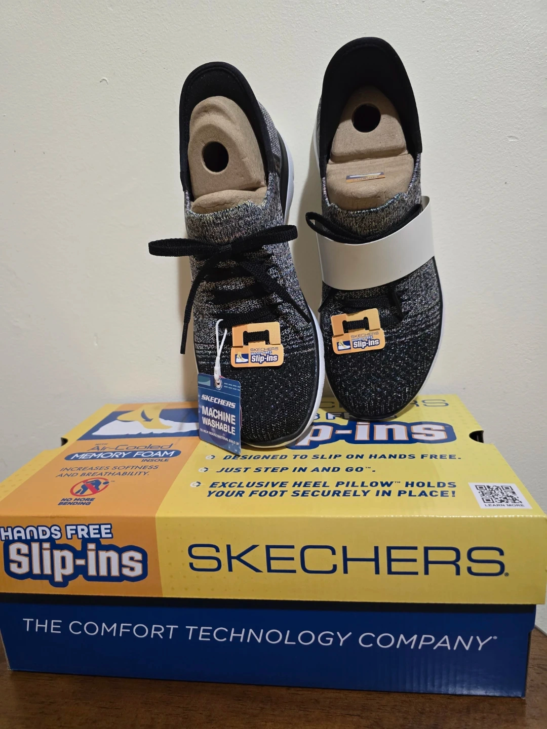 Brand new Skechers with "Hands Free Slip-ins" technology. Perfect for easy wear—just step in and go! Size 8, featuring an exclusive Heel Pillow™ that holds your foot securely in place. Very lightweight and breathable. Original box not included.