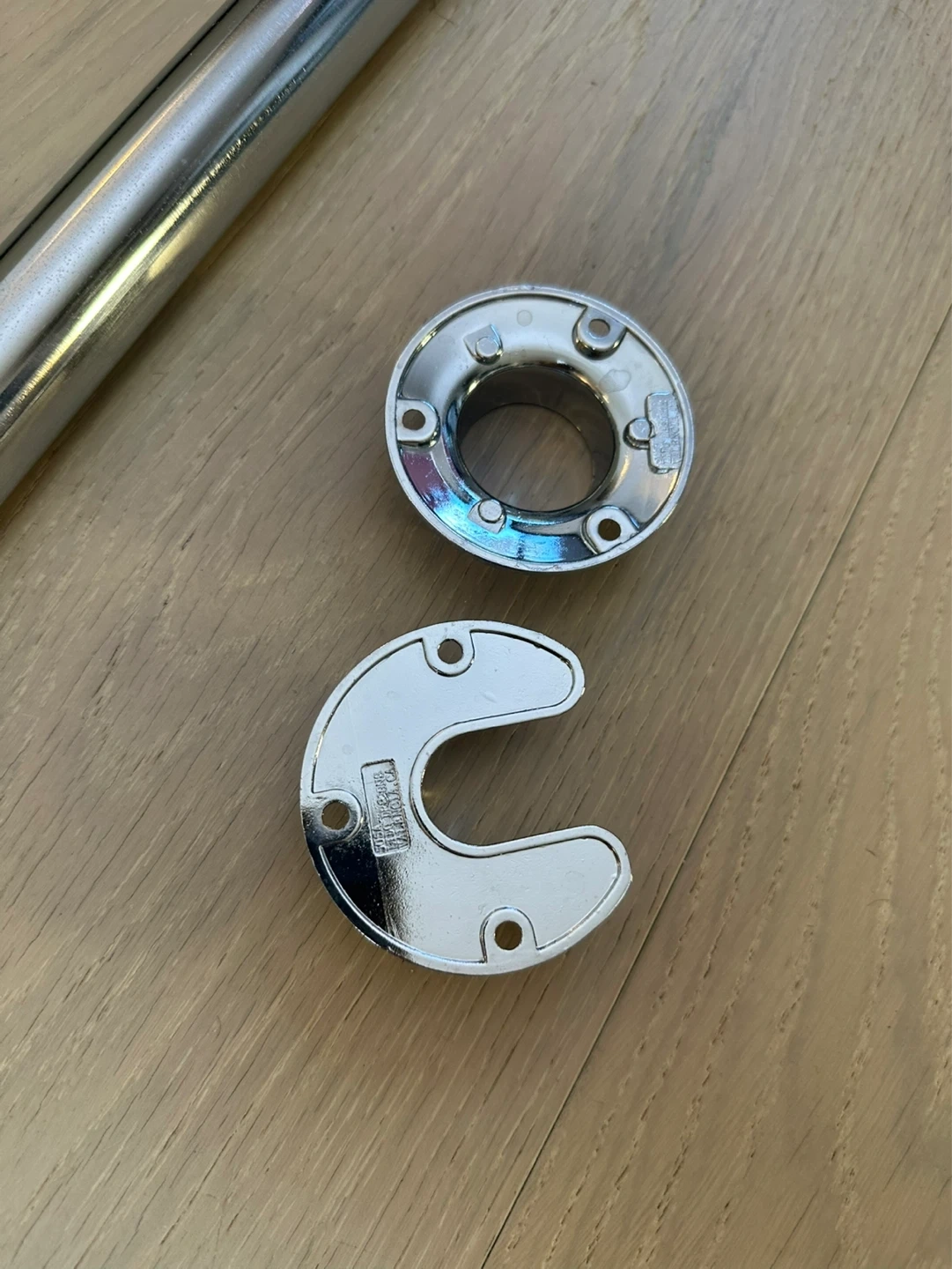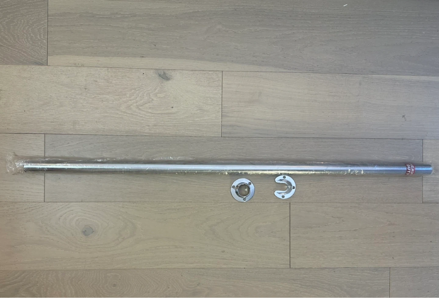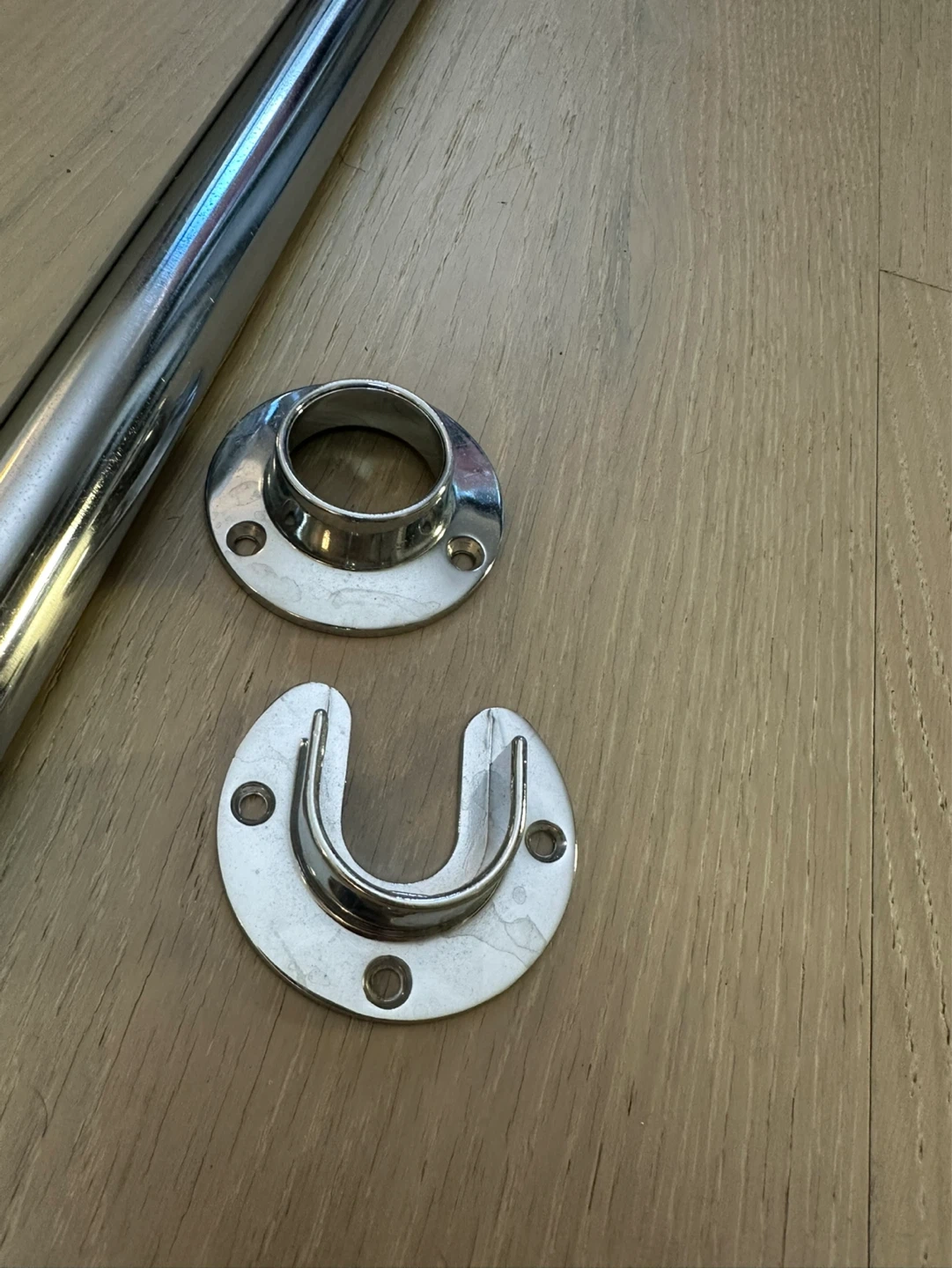 1 Chrome Closet Rod (approx. 45" long and 1.25" in diameter) with 2 matching chrome wall sockets (by Lido Design – Valencia style). Great for closet construction or upgrades.