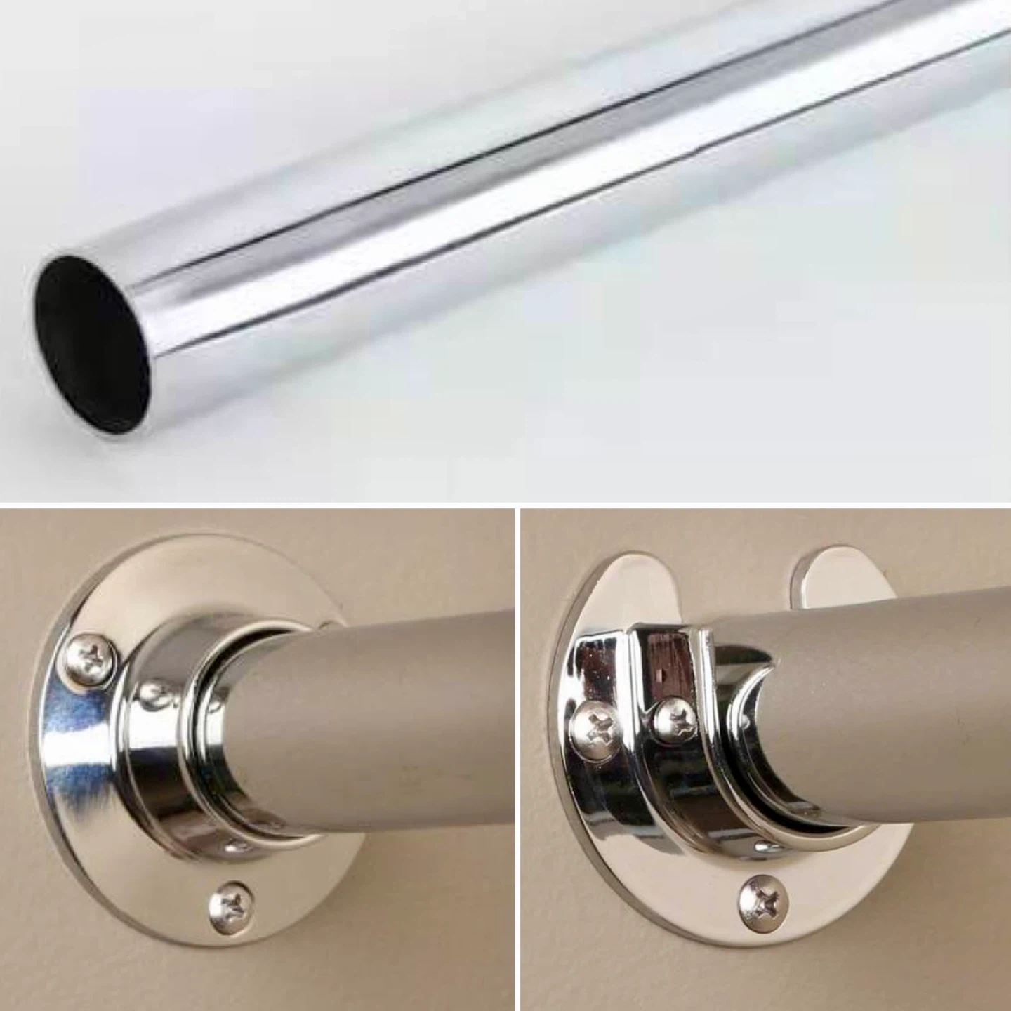 45" L Chrome Heavy-Duty Closet Pole + 2 Sockets